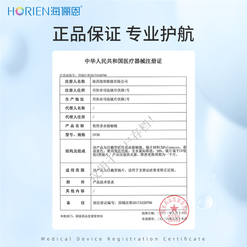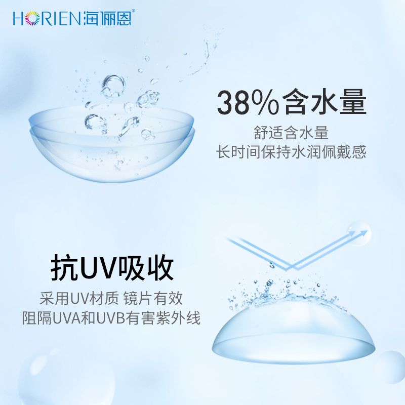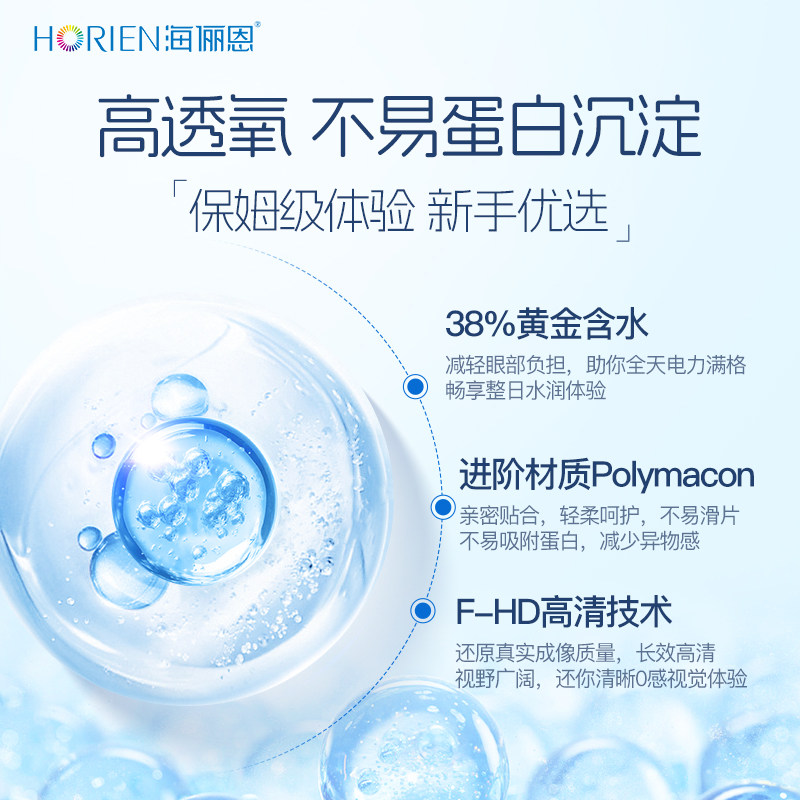 海俪恩隐形眼镜月抛润氧6片近视高清透明水润抗UV官方旗舰正品