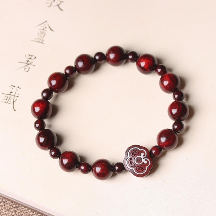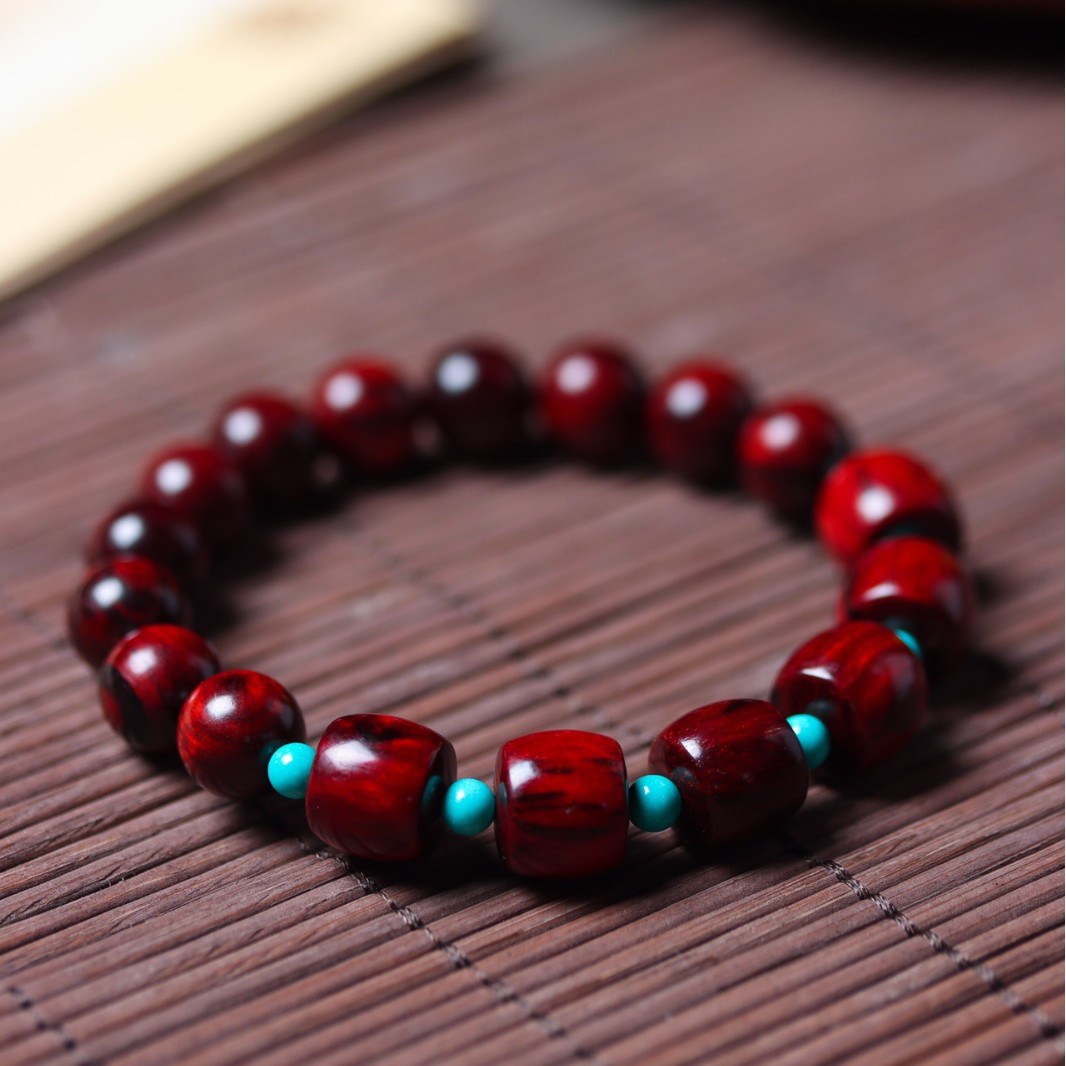 天然小叶紫檀手串木雕老料文玩手链女款圆珠檀木男隔珠搭配设计款