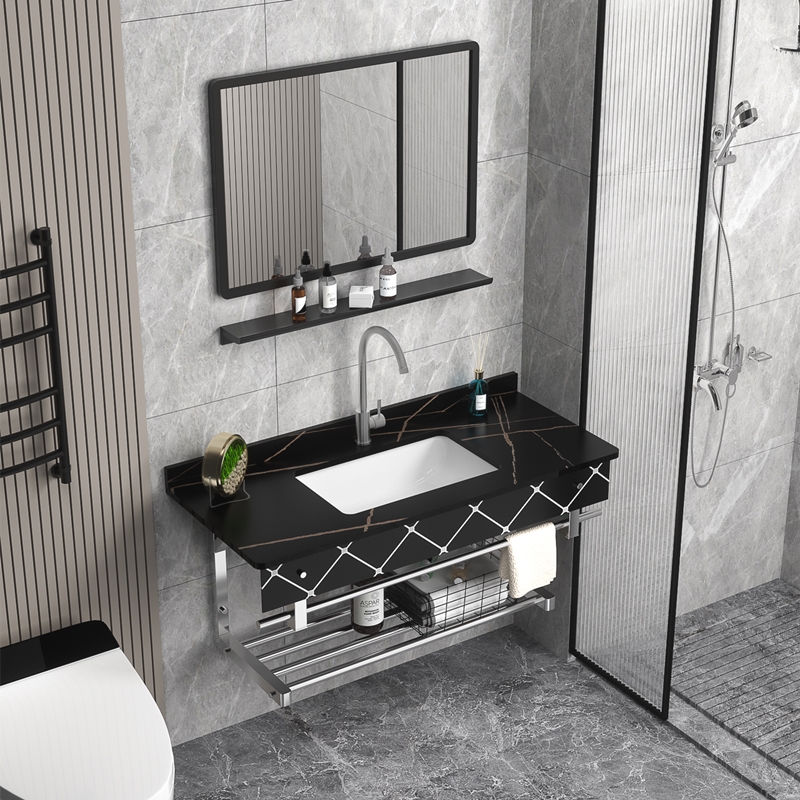 岩板台盆陶瓷洗手盆洗脸盆小户型不锈钢组合浴室柜卫生间阳台挂式