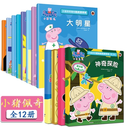 小猪佩奇趣味贴纸游戏书 全套12册 佩琪PeppaPig粉红猪小妹图画儿童绘本故事 捉迷藏益智游戏迷宫书找不同涂色 3-6-7岁 幼儿童书籍