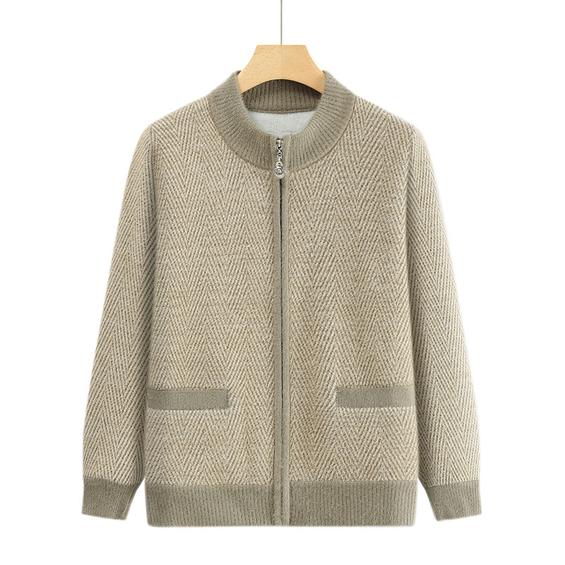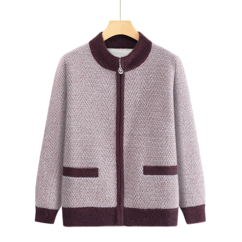 妈妈装秋冬季加绒开衫毛衣女衣服中老年妈妈上衣老年人针织衫外套