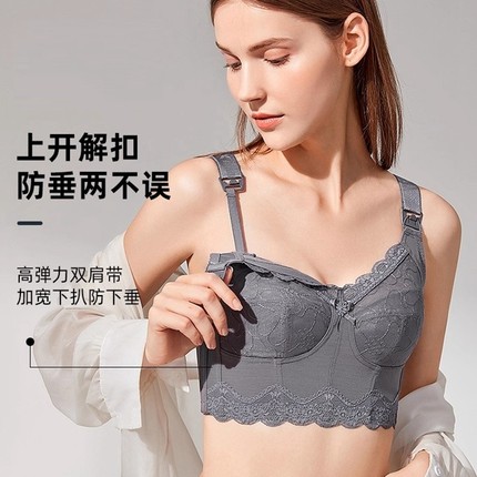 哺乳文胸胸罩大胸显小喂奶产后聚拢防下垂收副乳孕妇内衣大码薄款