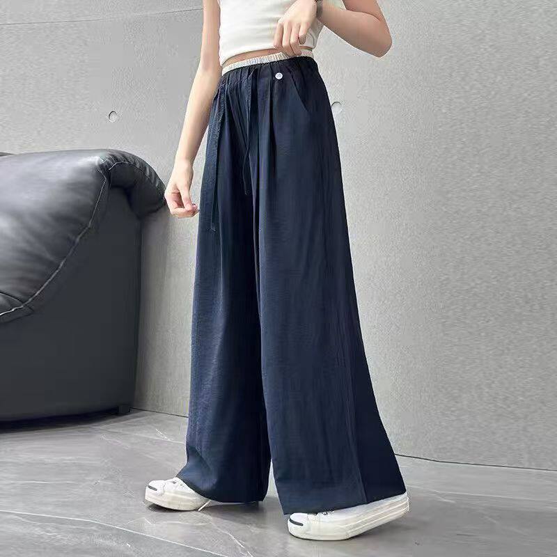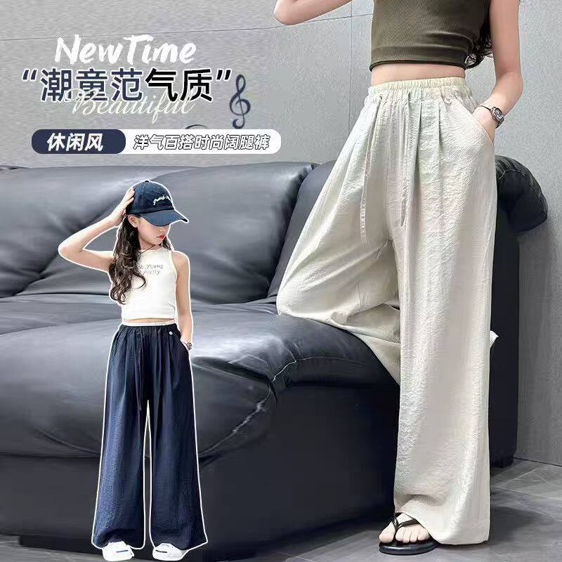 女童裤子夏季薄款垂感亲肤直筒裤中大童防蚊裤宽松休闲棉麻阔腿裤