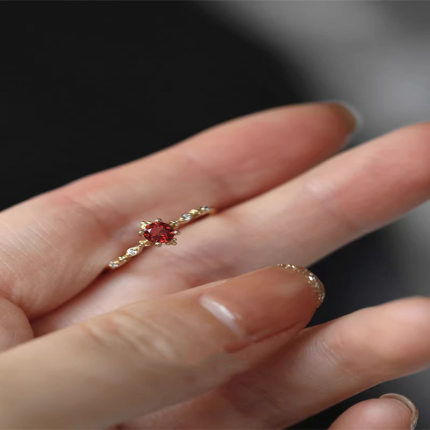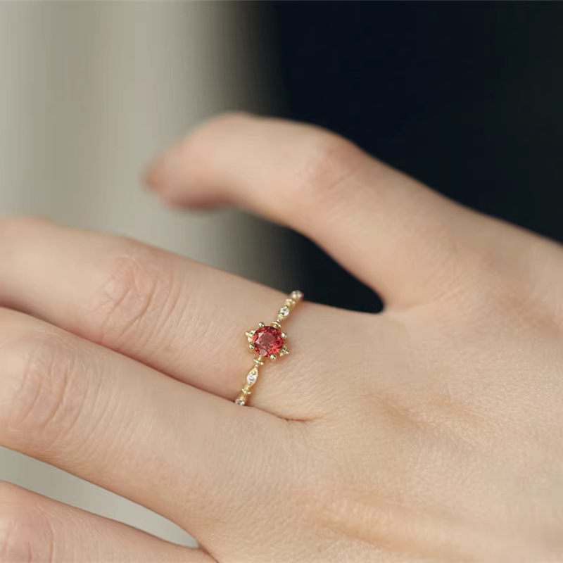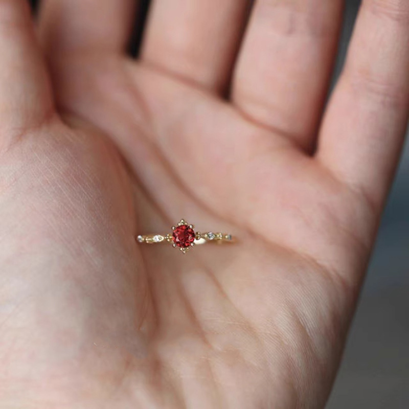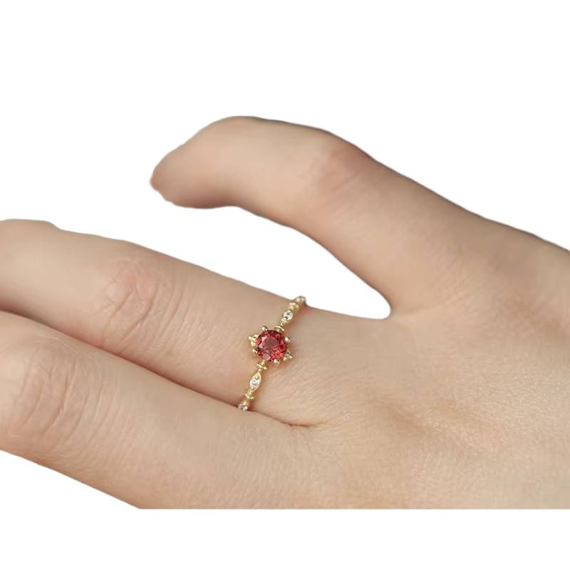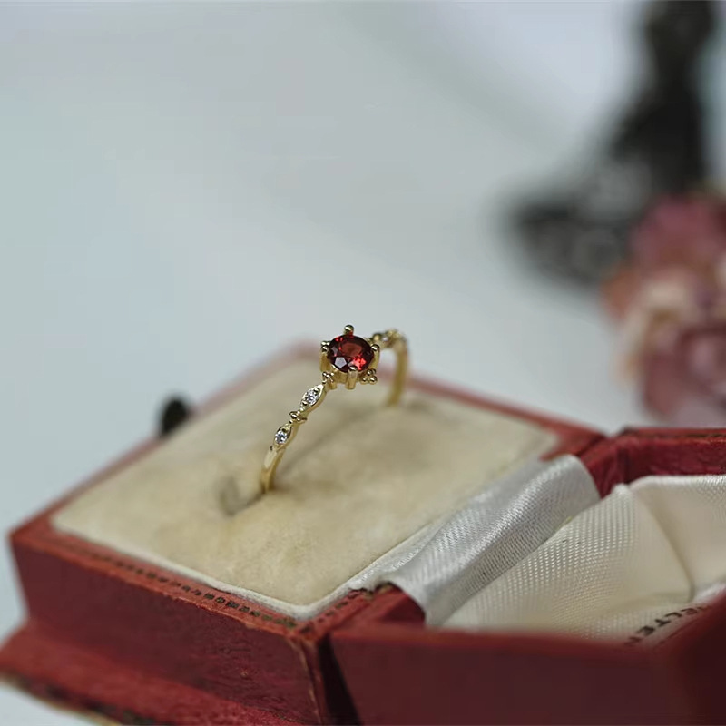 复古宫廷风酒红石榴石显白日系轻奢精美金戒指细指环