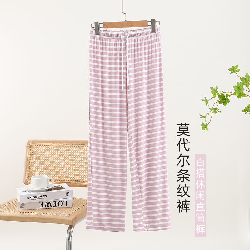 莫代尔薄款条纹家居长裤