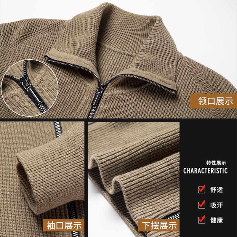 恒源祥毛衣男秋冬季商务休闲100%纯羊毛开衫加厚保暖针织衫外套男