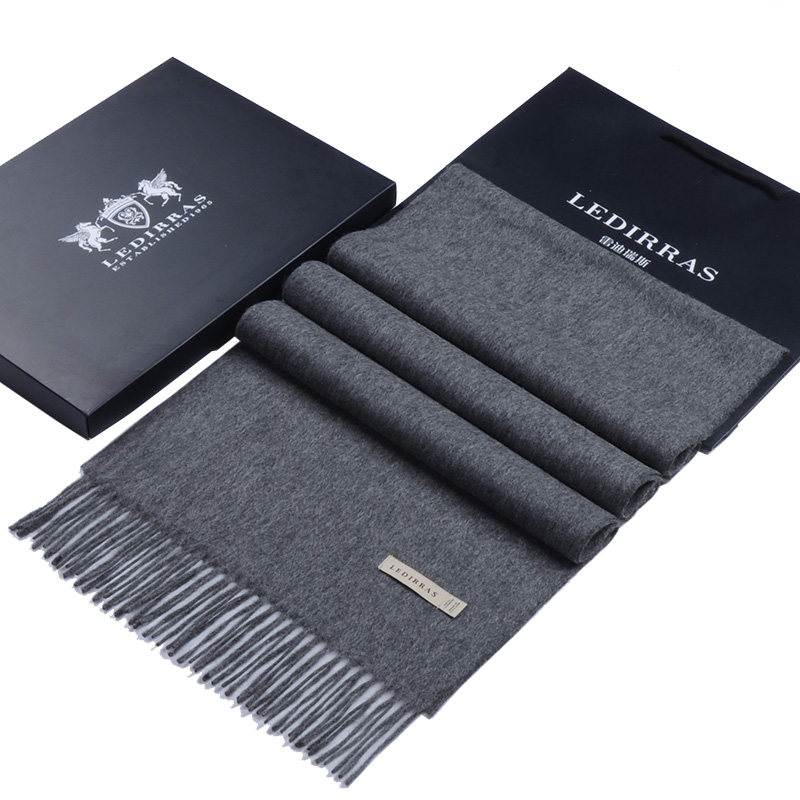 韩版秋冬季加厚保暖围脖商务纯色男士女士羊毛围巾披肩长款深灰色