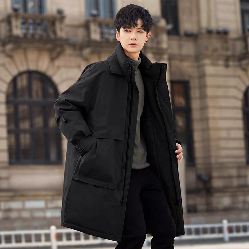 男士中长款羽绒服2025冬季新款白鸭绒加厚保暖派克外套青少年风衣