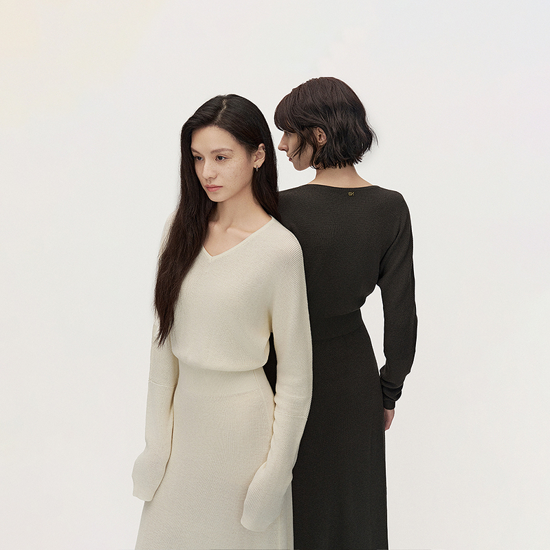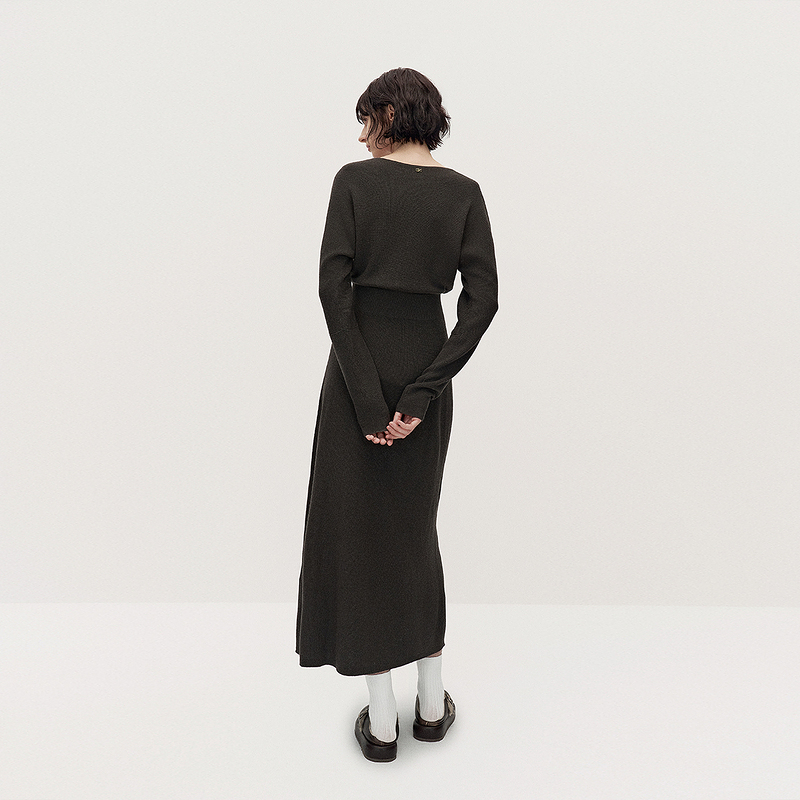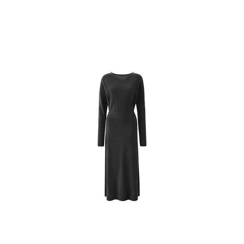 OCHIRLY欧时力羊毛长款毛织连衣裙V领软糯保暖显瘦2025春新款