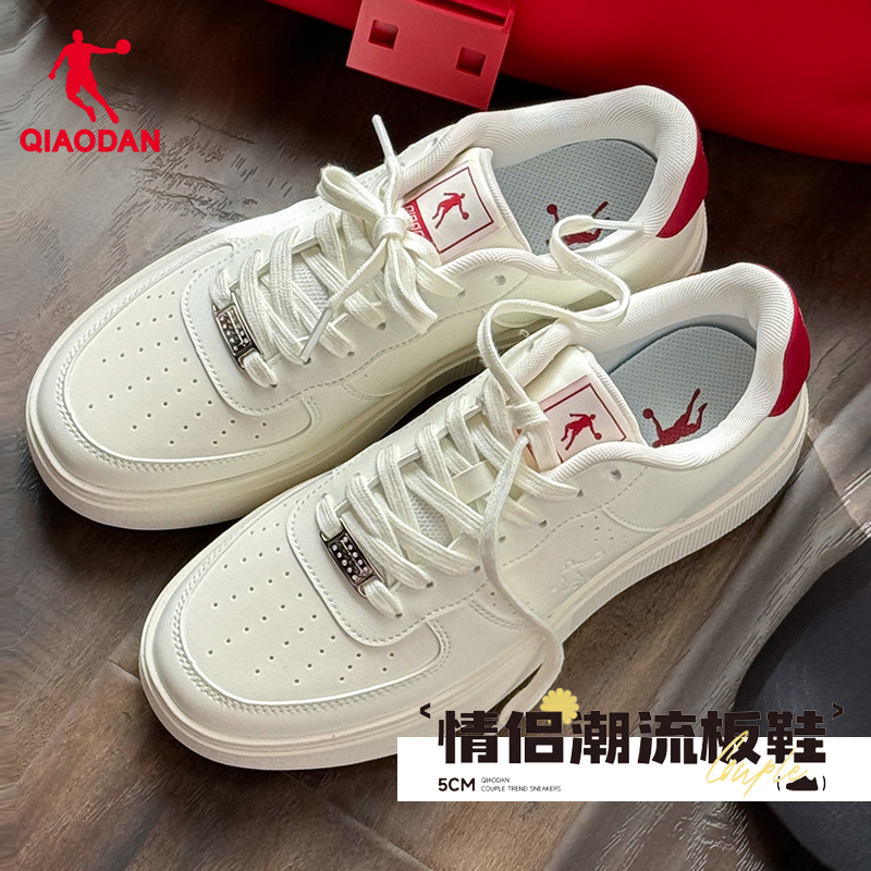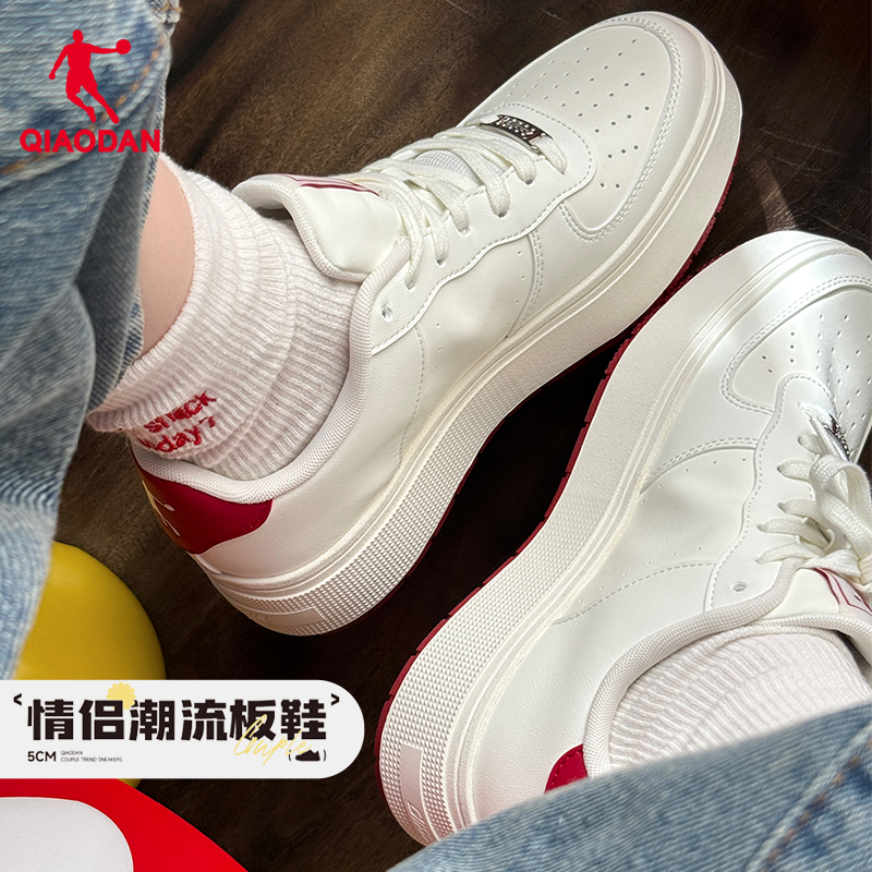 五厘米|乔丹红色厚底运动板鞋空军皮面潮流百搭情侣增高小白鞋