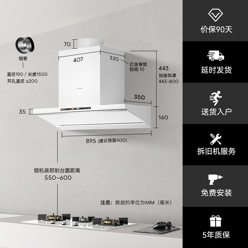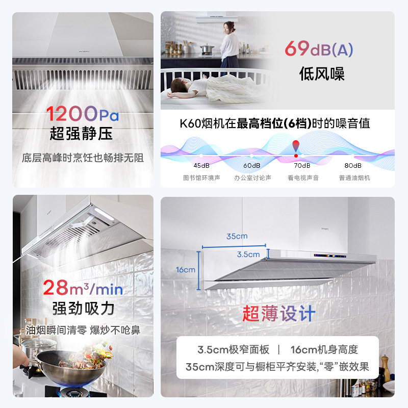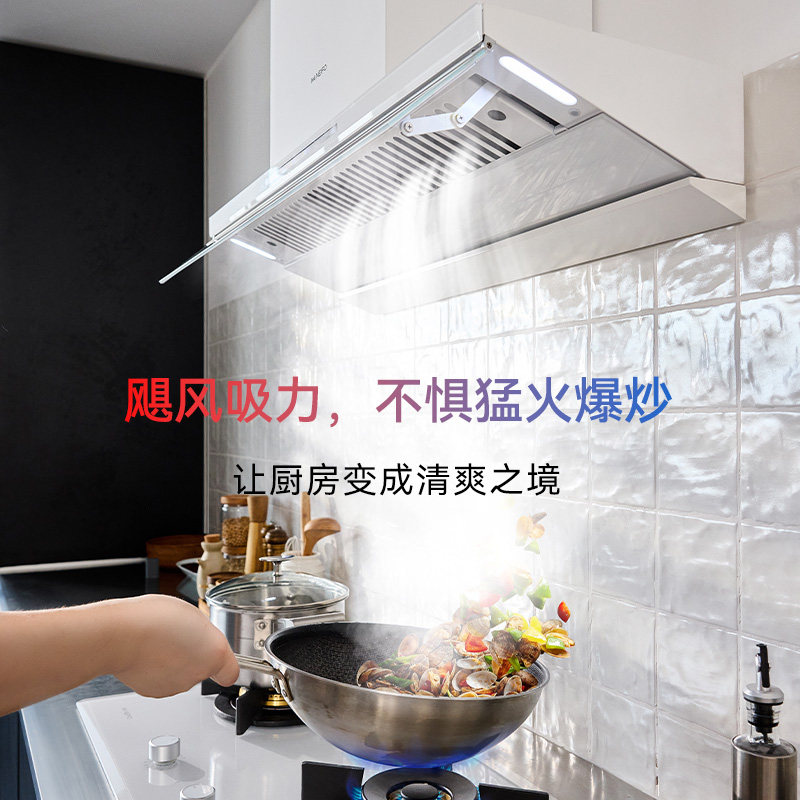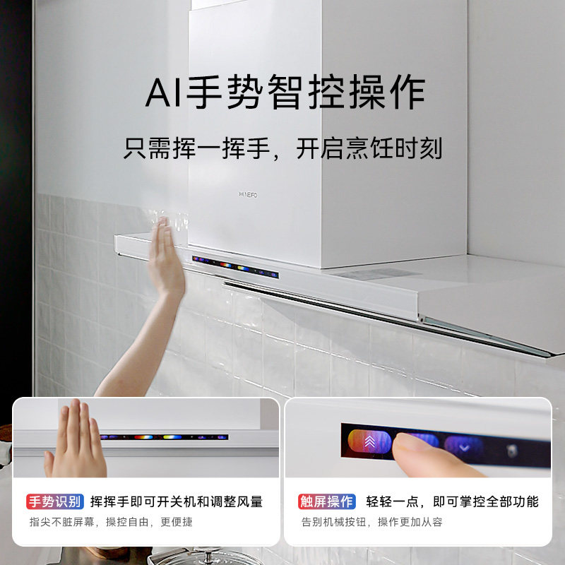 NEIFO/内芙K60大吸力烟灶套装顶侧一体白色抽油烟机燃气灶具套装