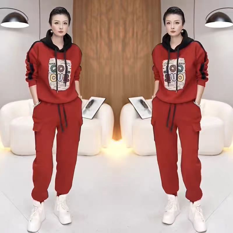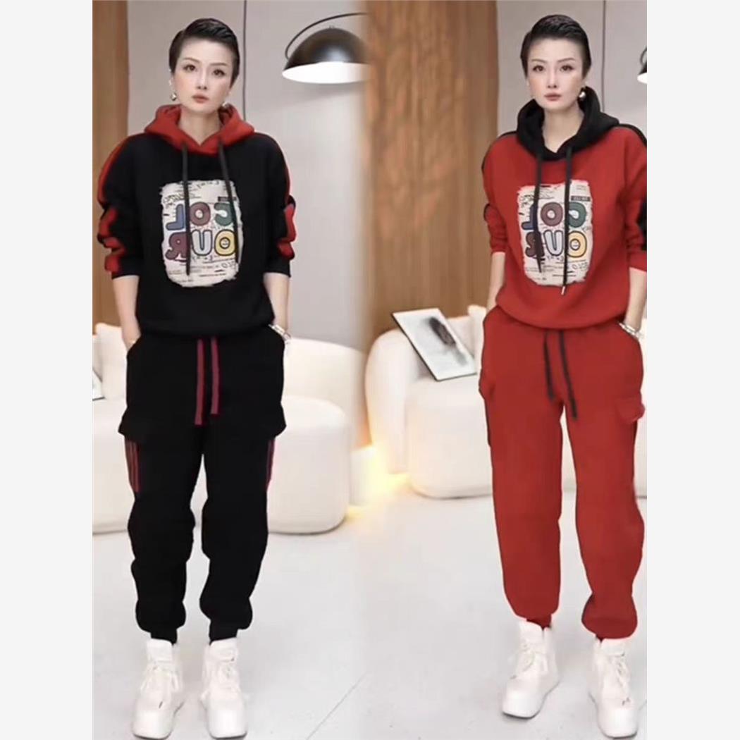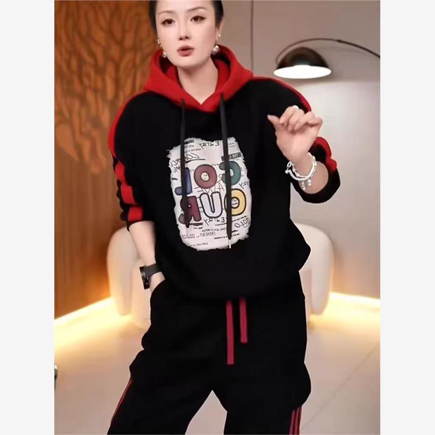 加绒加厚休闲运动套装女2025冬季新款时尚宽松显瘦连帽卫衣两件套