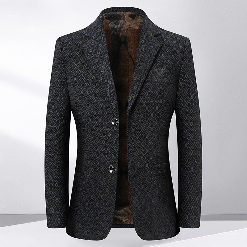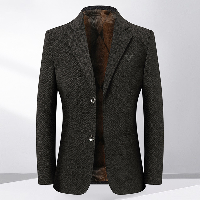 送父亲加绒加厚西服新款男装中老年商务休闲爸爸装西装外套