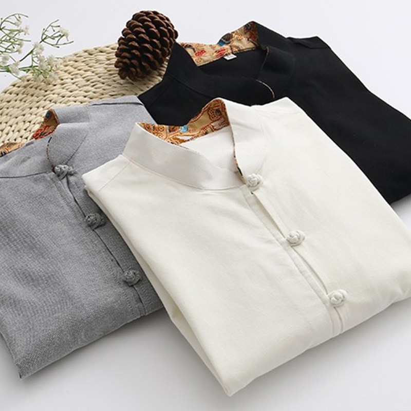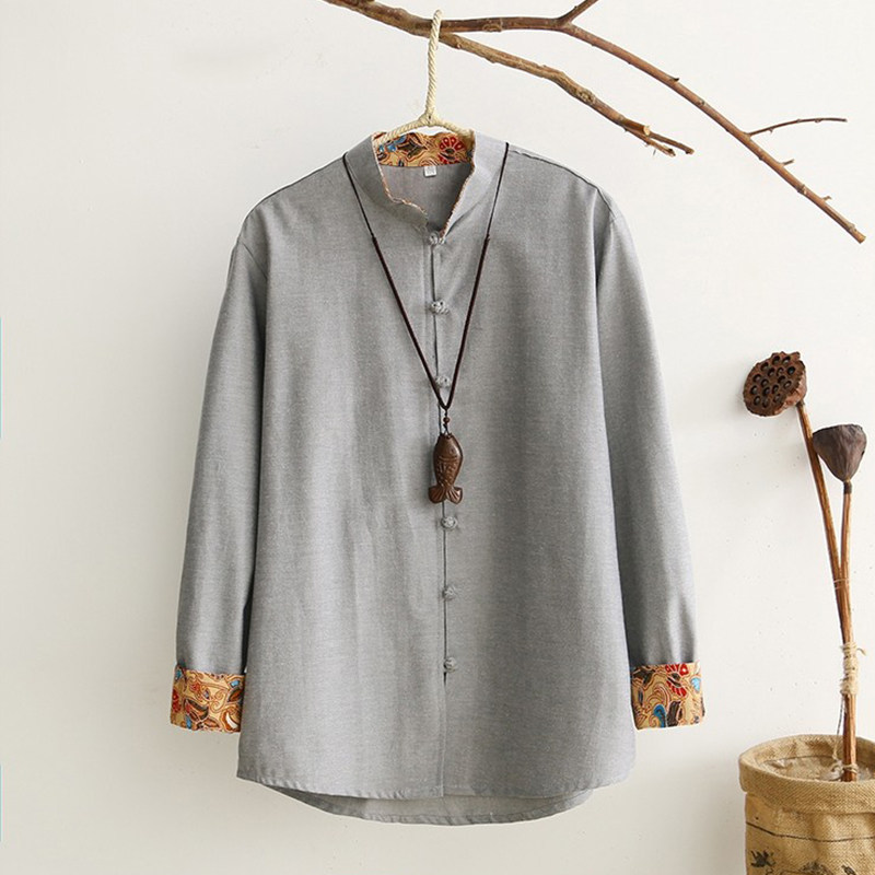 中国风唐装男青年长袖外套中式国潮复古立领盘扣衬衣休闲改良茶服