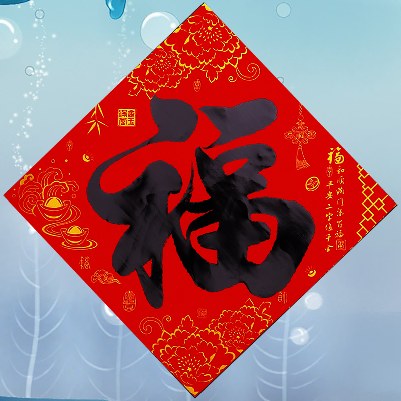 2025年黑字福字大吉门贴春联新年书法对联春节装饰春联墙大门贴纸