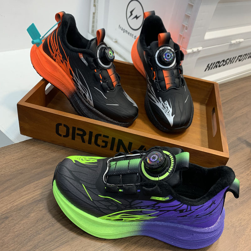 儿童篮球鞋男童旋转扣运动鞋2025秋冬季新款中大童加绒轻便跑步鞋