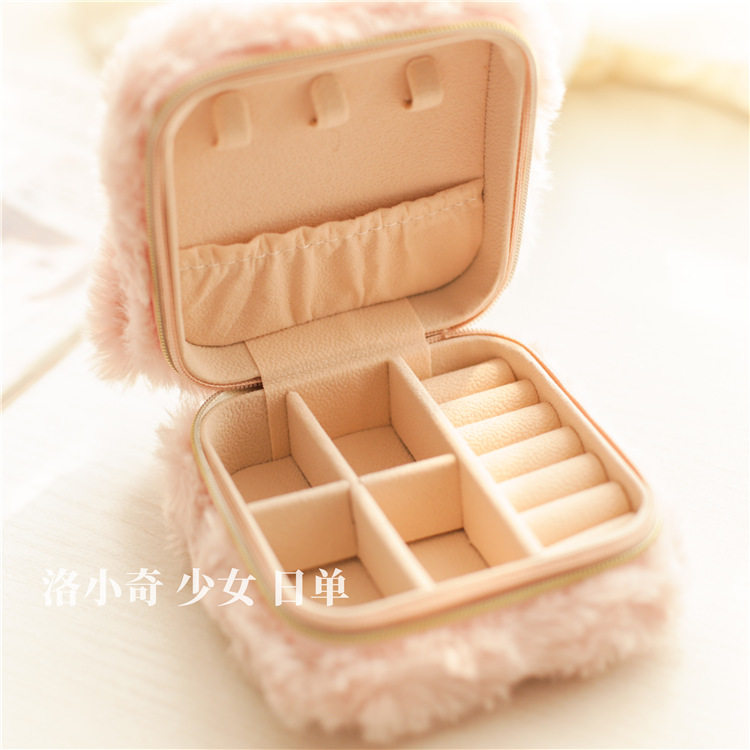 日系 可爱粉嫩 狐狸猫咪软绵绵首饰盒 便捷式戒指旅行小巧收纳盒