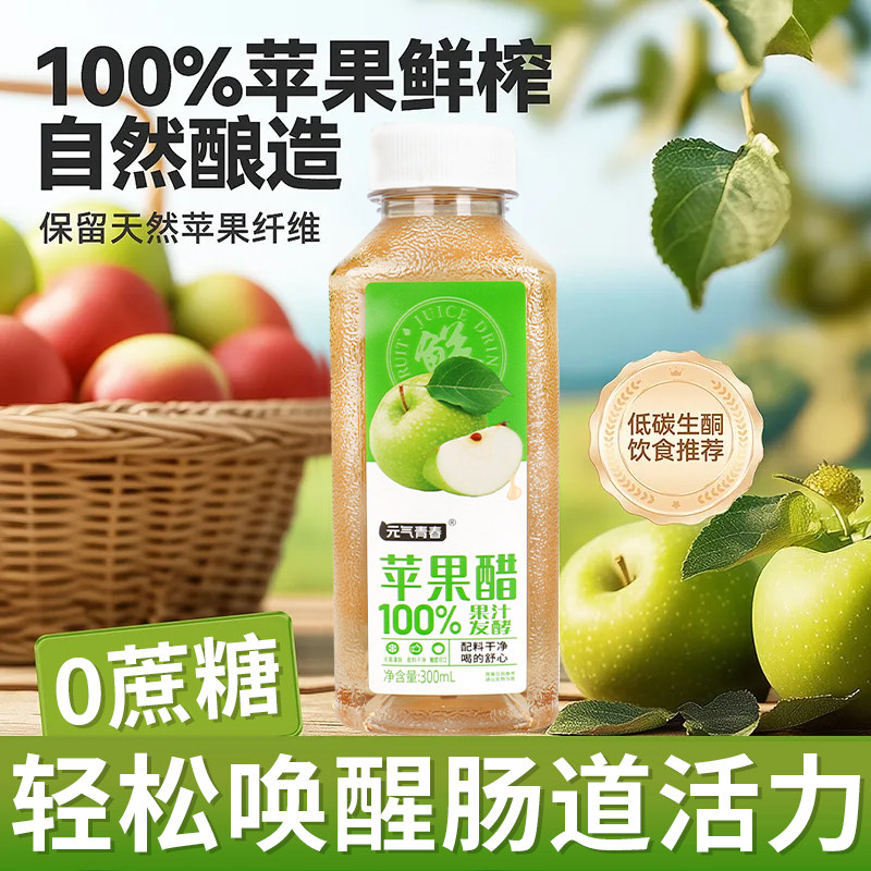 【限时促销】正宗苹果醋饮品100%果汁发酵开胃解腻0脂轻断食随餐