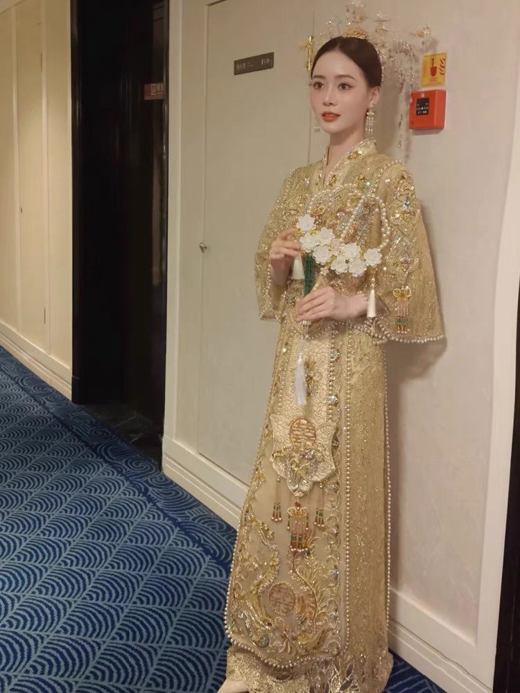 秀禾服新娘礼服2024年新款金色大码秀和敬酒夏款孕妇中式嫁衣婚服