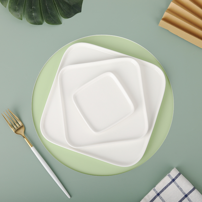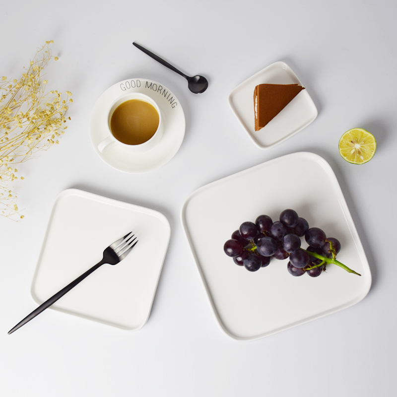 简约纯白色西餐盘牛排盘正方形陶瓷盘子创意家用菜盘平盘酒店餐具