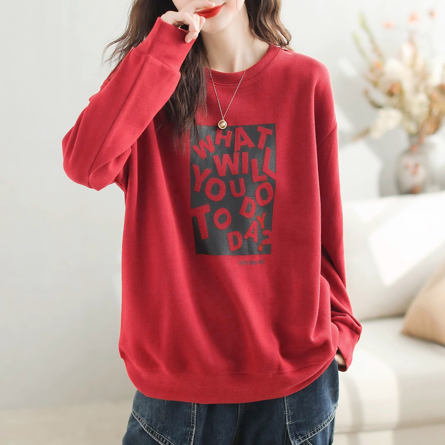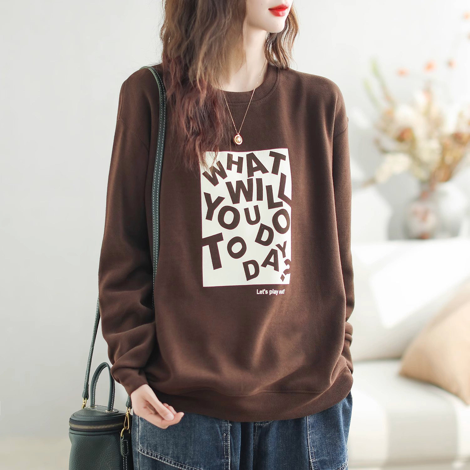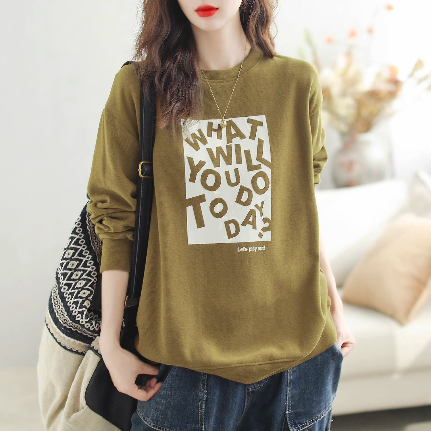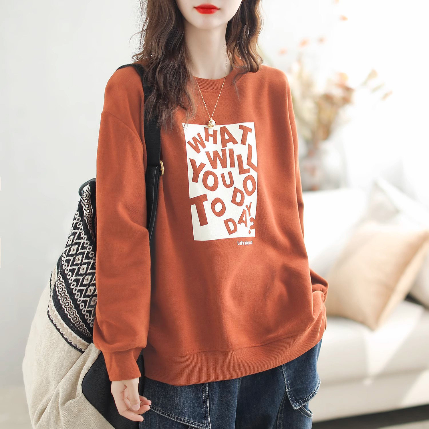 宽松纯棉复古印花卫衣秋季大码