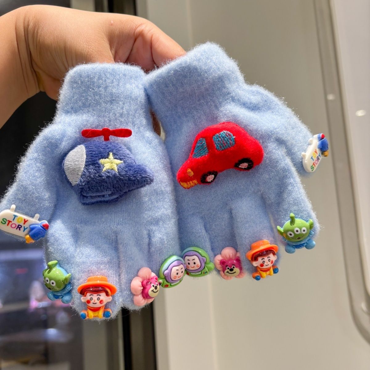 汽车总动员卡通儿童手套冬季保暖防寒五指套学生毛绒可爱洋气手套