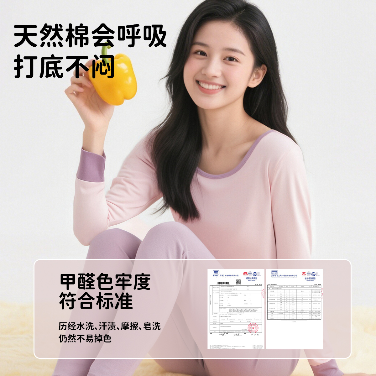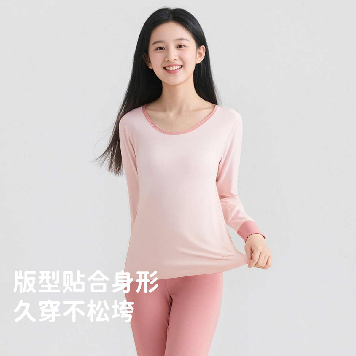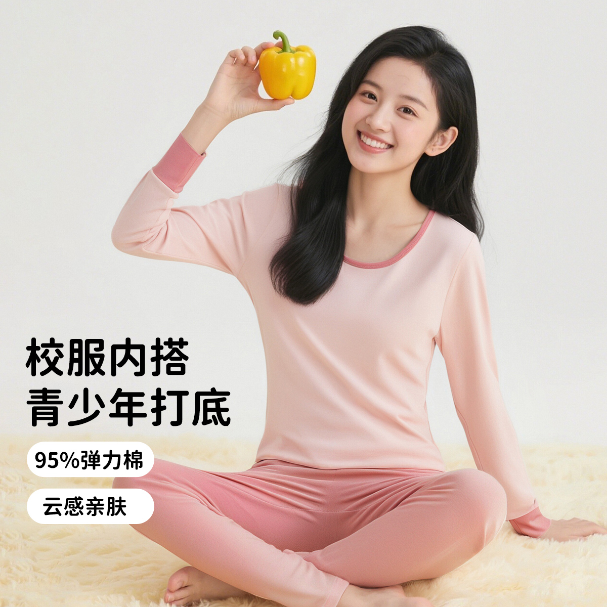 顶瓜瓜少女棉氨纯色秋衣秋裤套装学生初中生保暖内衣大童棉毛衫薄