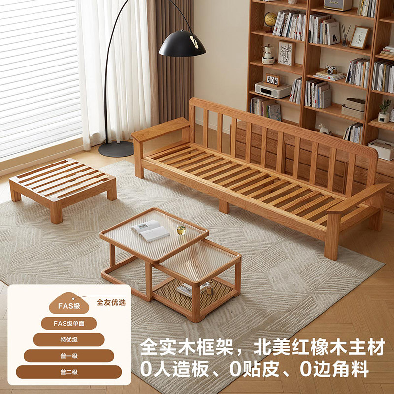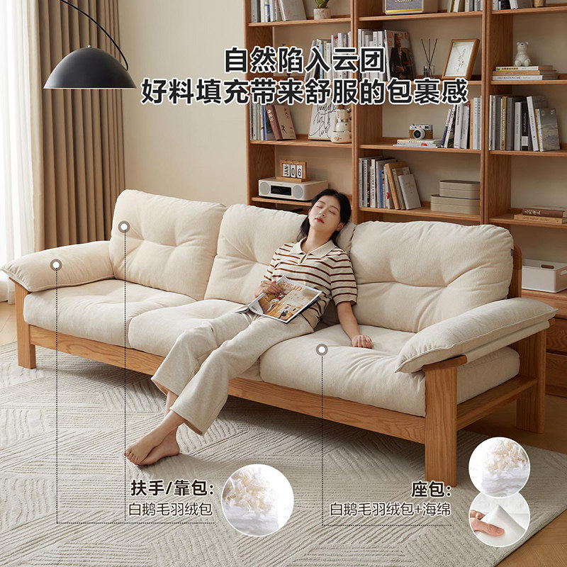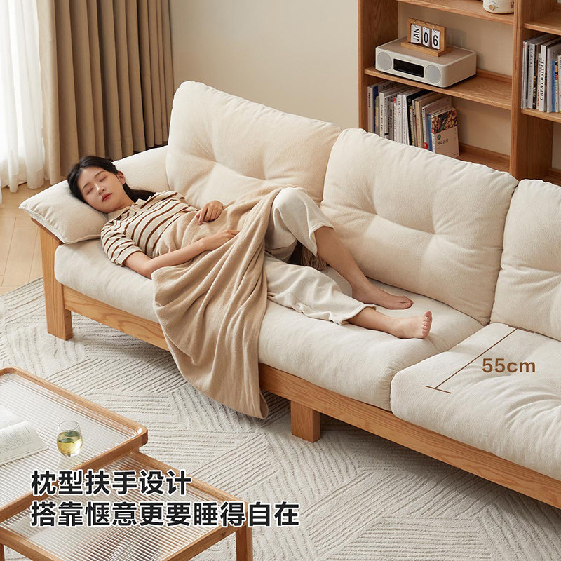 全友家居新款原木风云朵布艺沙发可拆洗客厅红橡木实木沙发三人位