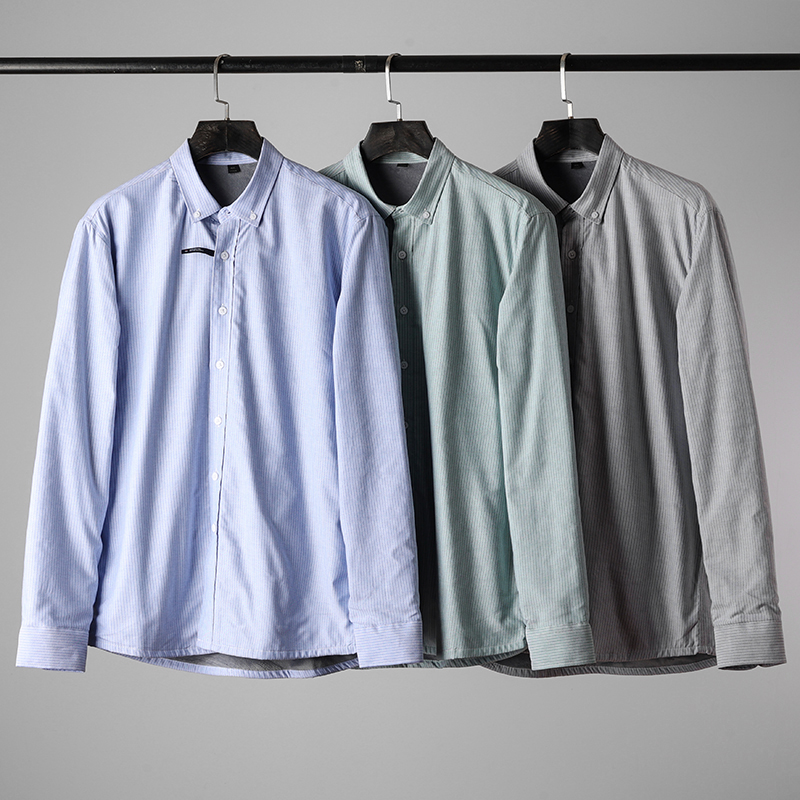 超值!保暖不臃肿外贸男装尾货秋冬商务休闲百搭加绒条纹长袖衬衫