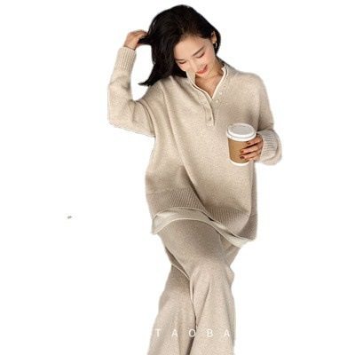 秋季时尚网红慵懒宽松港风套装女复古chic洋气针织阔腿裤两件套