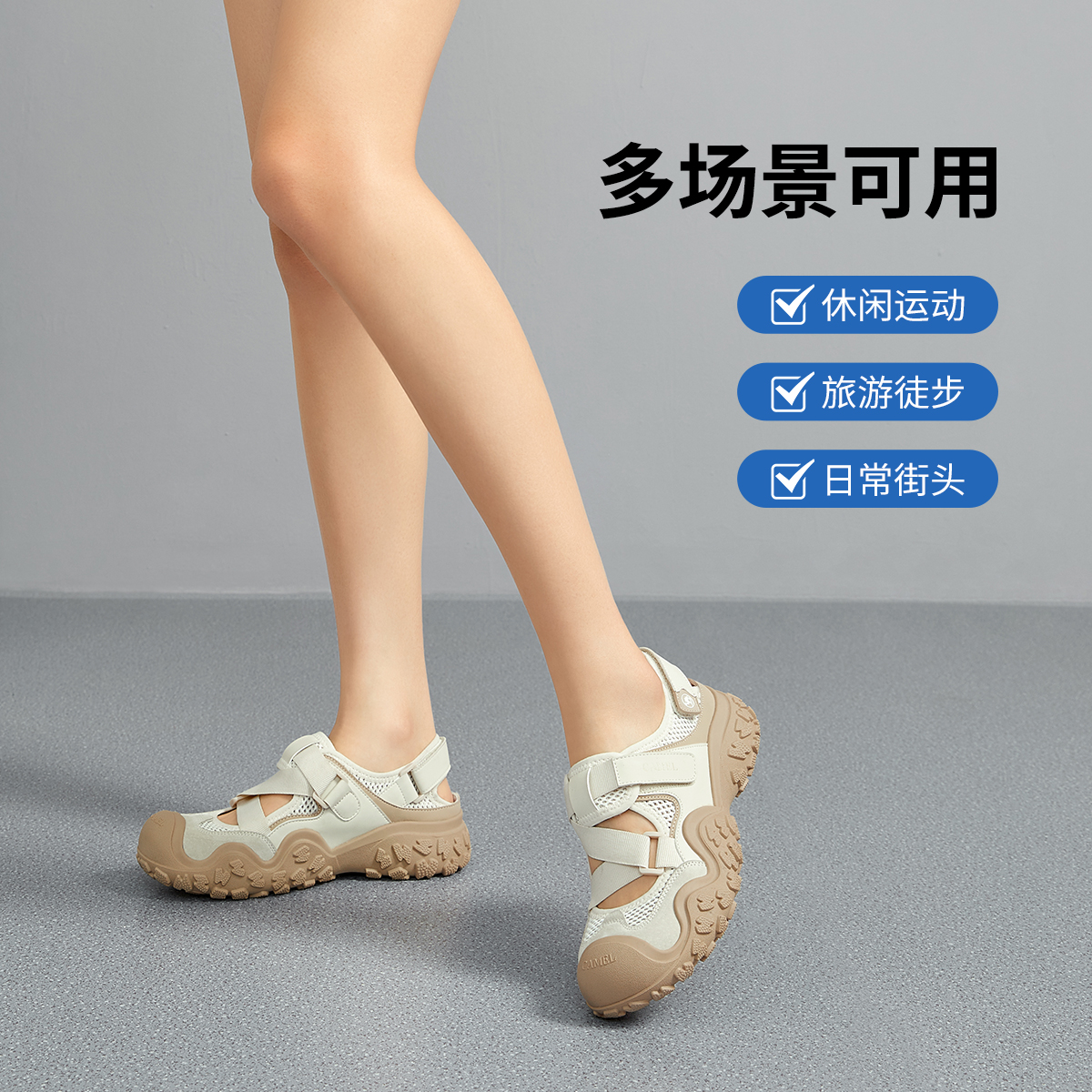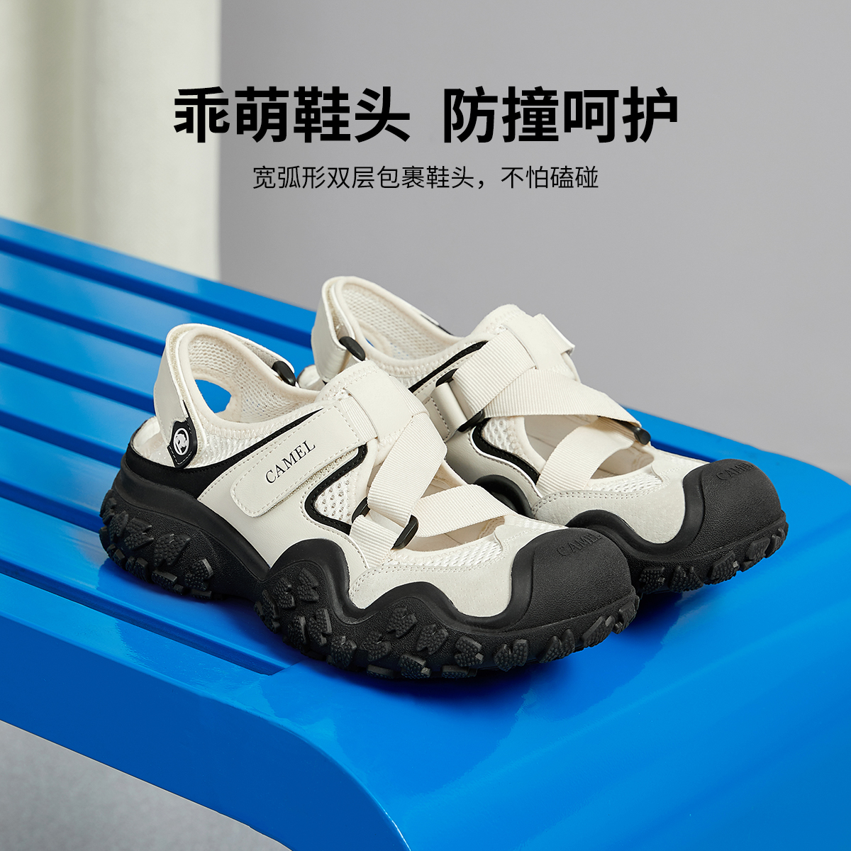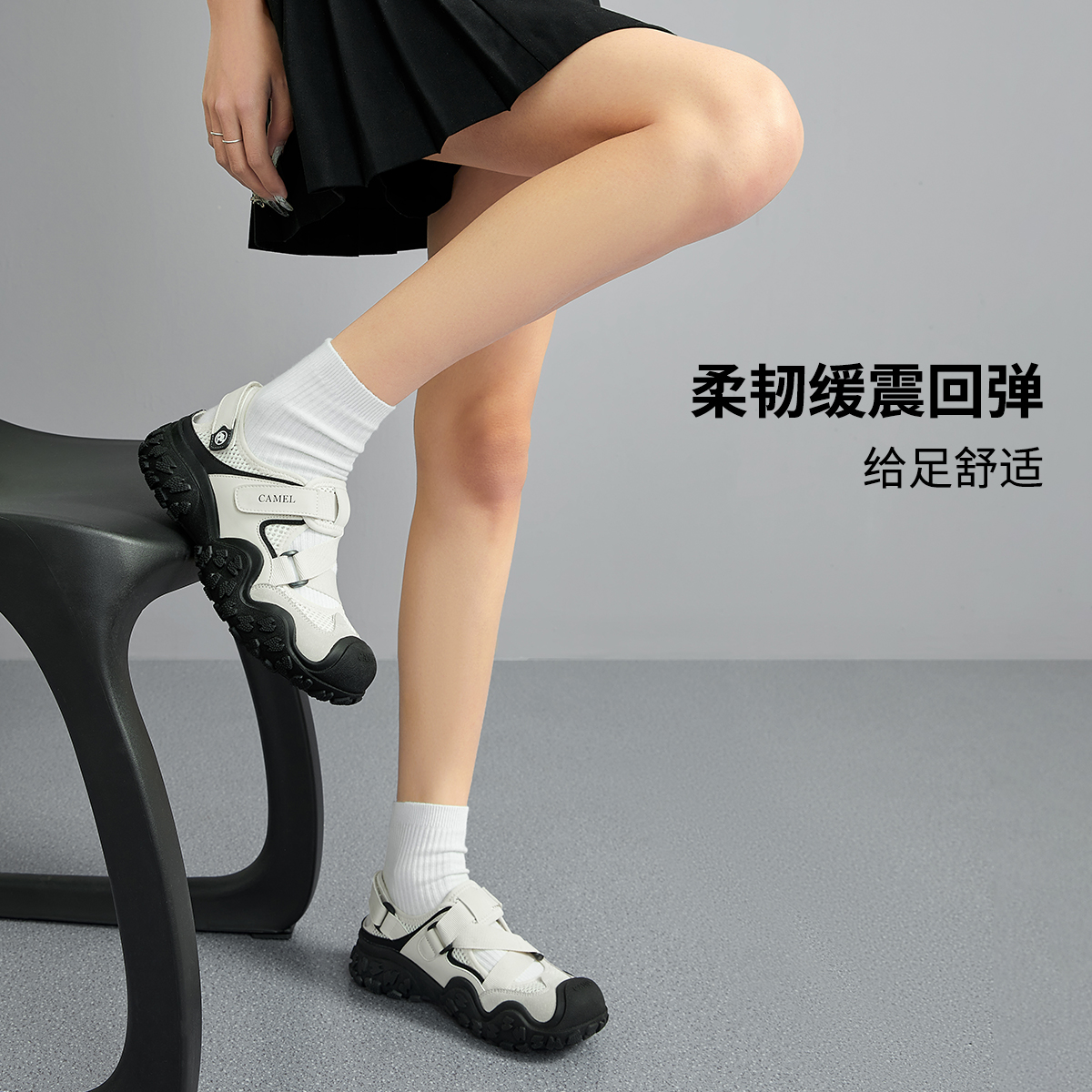 骆驼女鞋2025夏季新款户外镂空运动鞋女款丑萌鞋透气复古老爹凉鞋