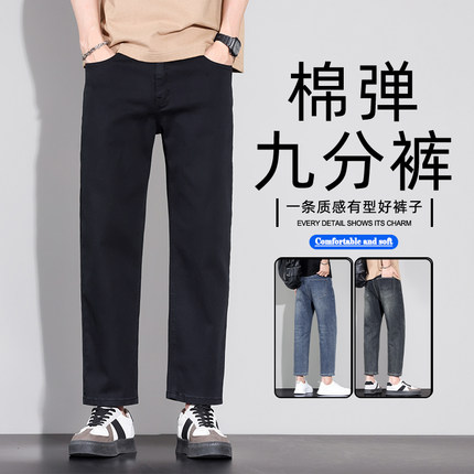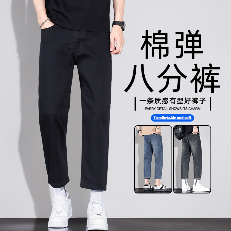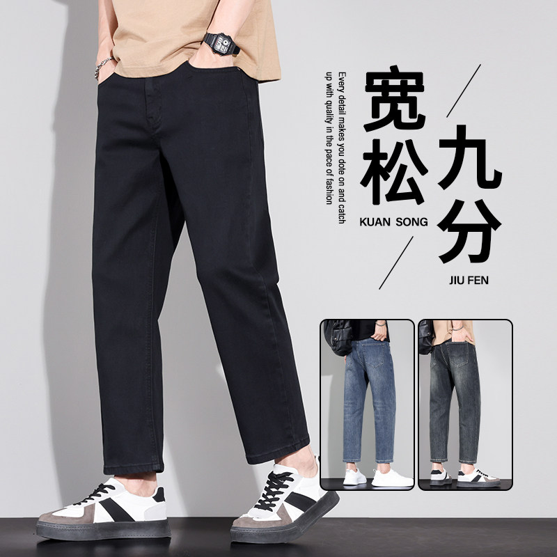 新款男士宽松直筒九分裤小个子八分牛仔裤9分男裤男士休闲8分裤子