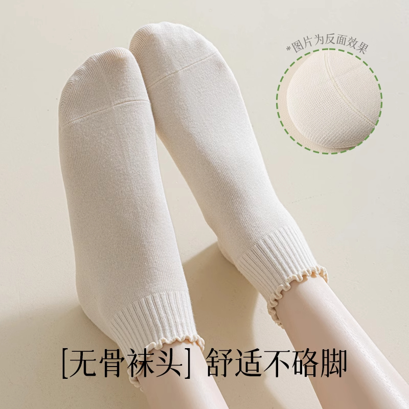 木耳边袜子女春秋款吸汗防臭白色无骨月子袜纯棉中筒袜学生运动袜