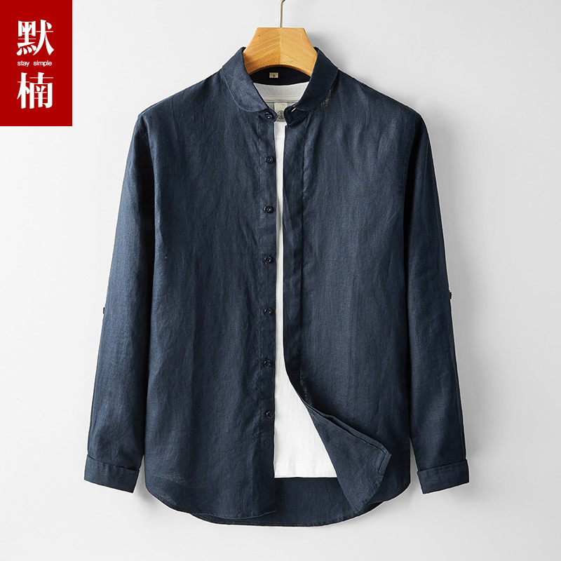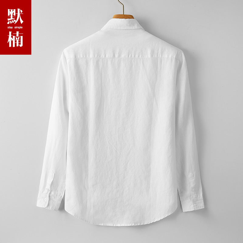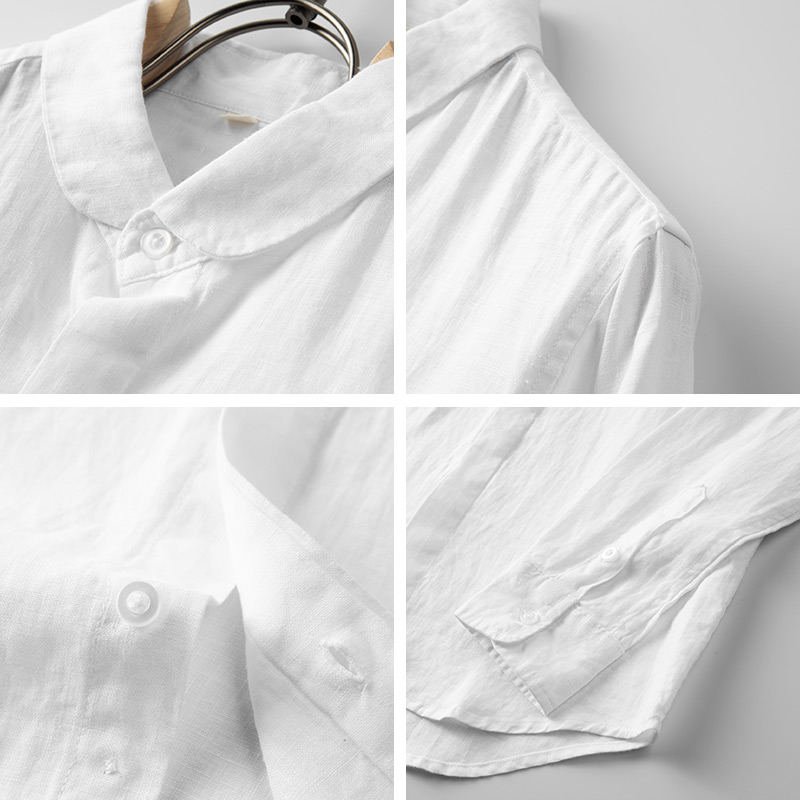 男装2024新款休闲通勤风白色宽松纯亚麻翻领衬衫男士透气防晒上衣