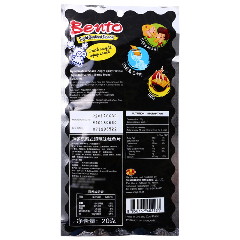 泰国进口bento拌多乐手撕鱿鱼片辣条香甜辣味鱿鱼干鱿鱼丝零食品
