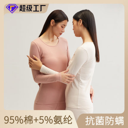 秋衣秋裤抗菌女士纯棉套装女薄款保暖内衣莱卡棉打底套装大码