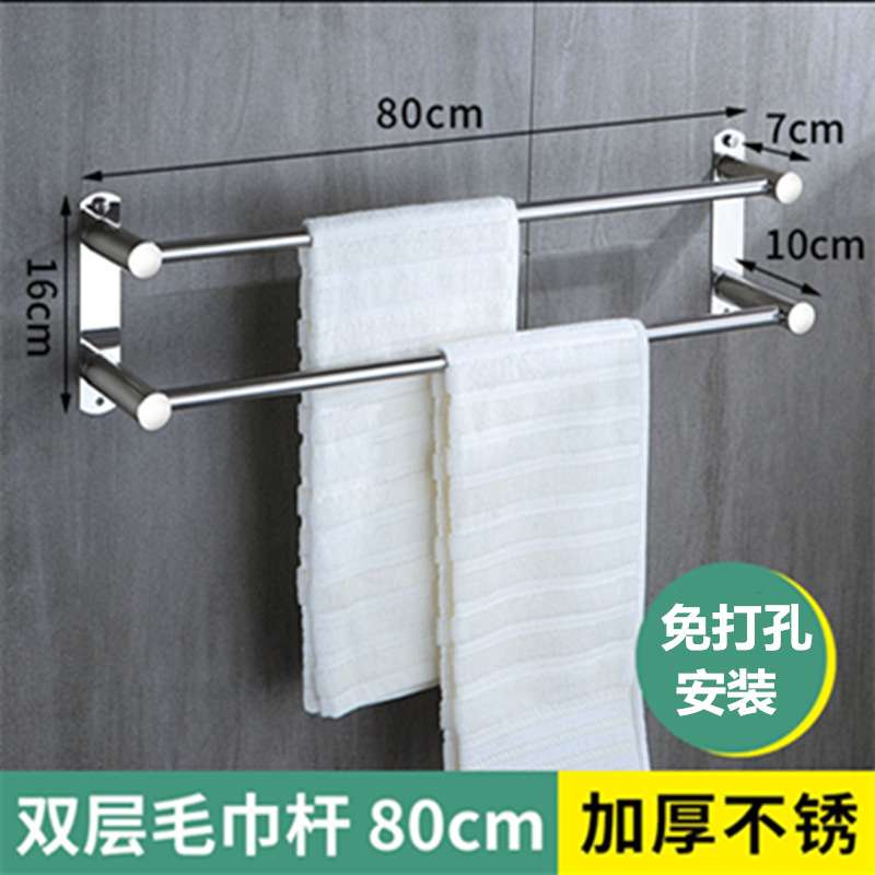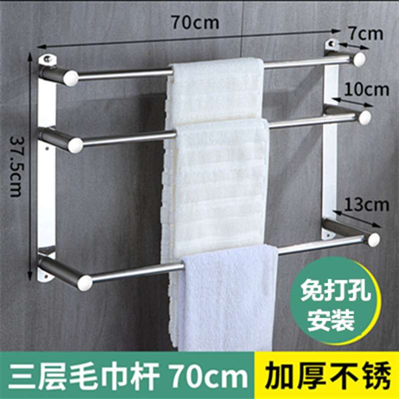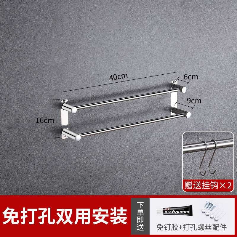 毛巾架免打孔304不锈钢浴巾架杆卫生间挂钩浴室置物架卫浴毛巾杆