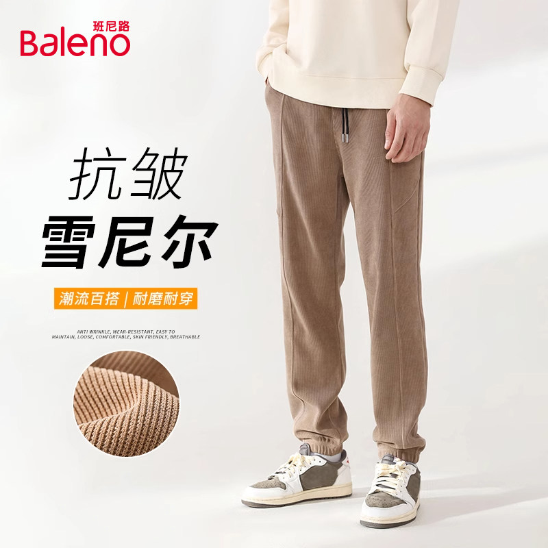 班尼路美式复古裤子男春秋季重磅雪尼尔束脚裤男士运动休闲卫裤A