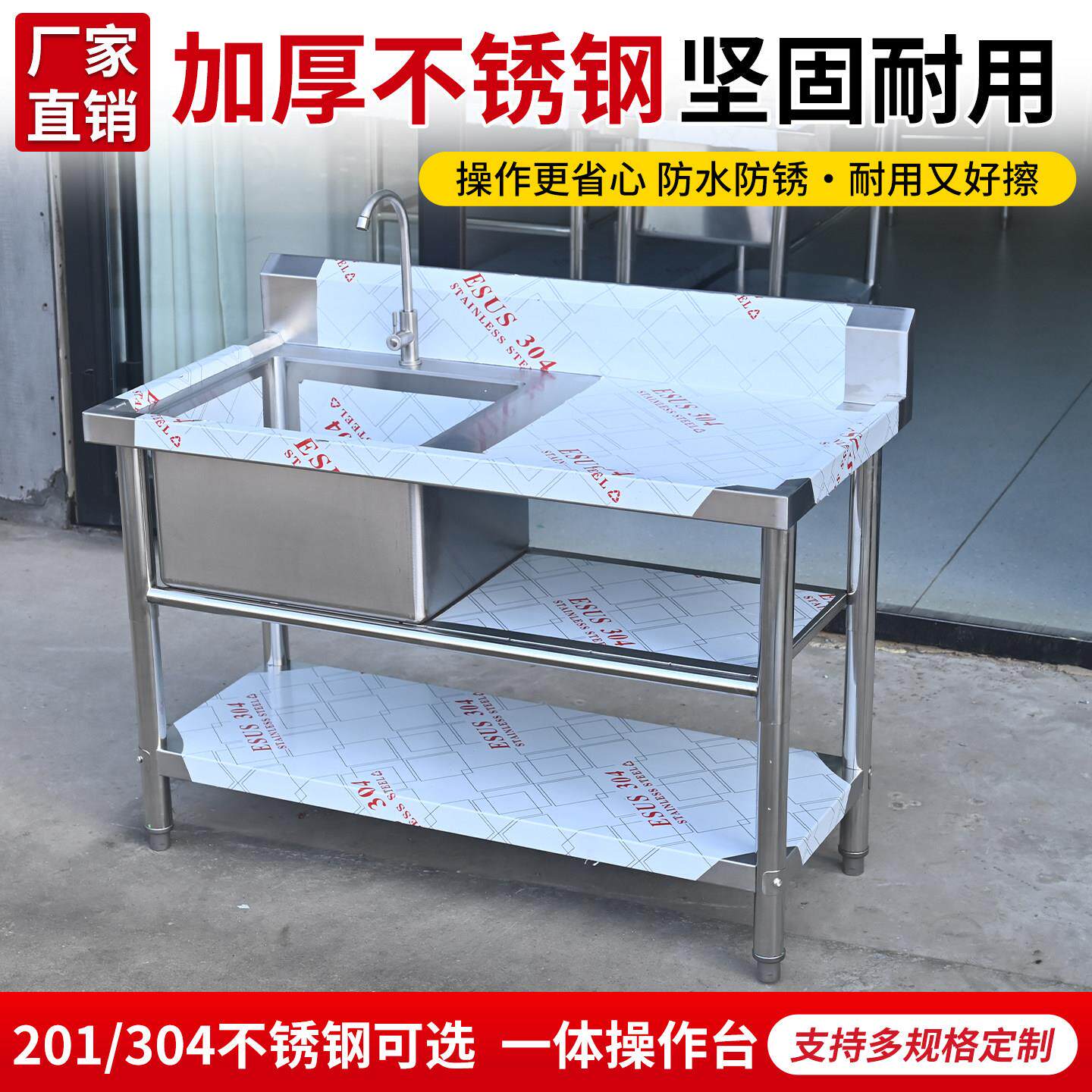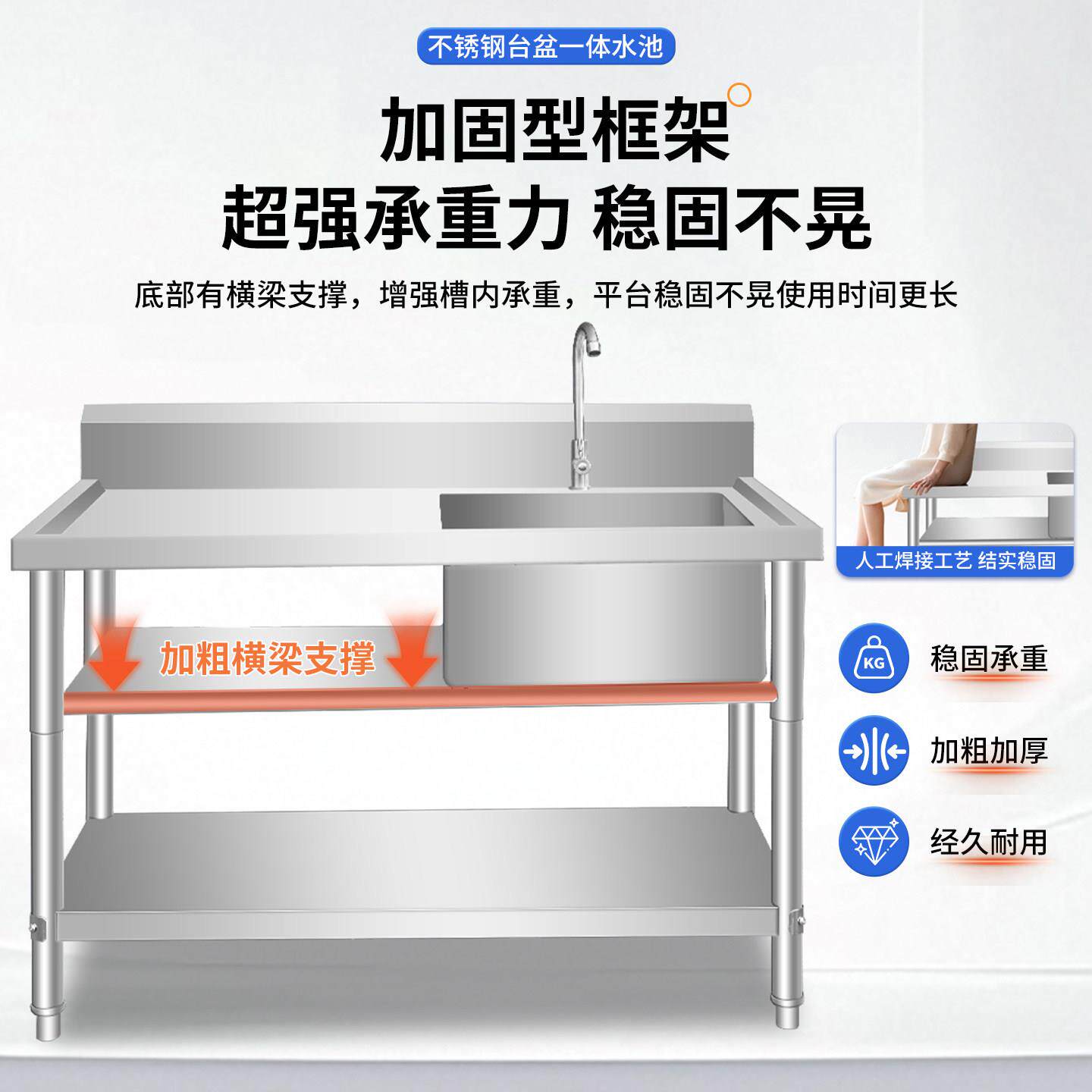 304不锈钢台盆一体操作台带平台洗刷台家用厨房洗菜台洗碗池水槽