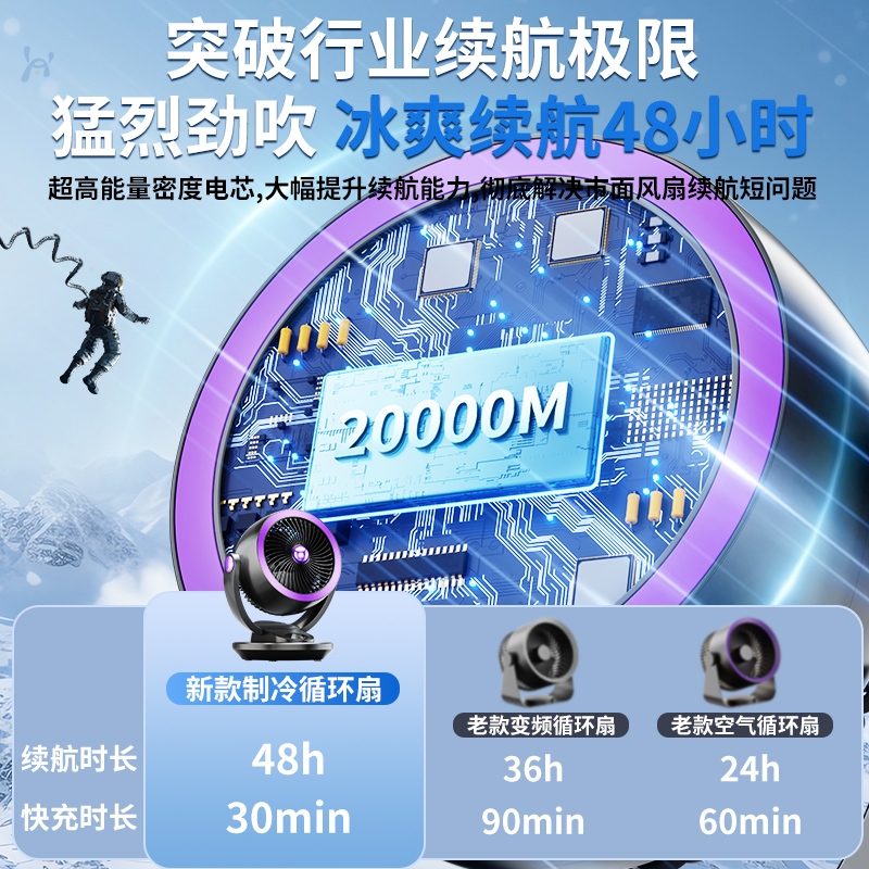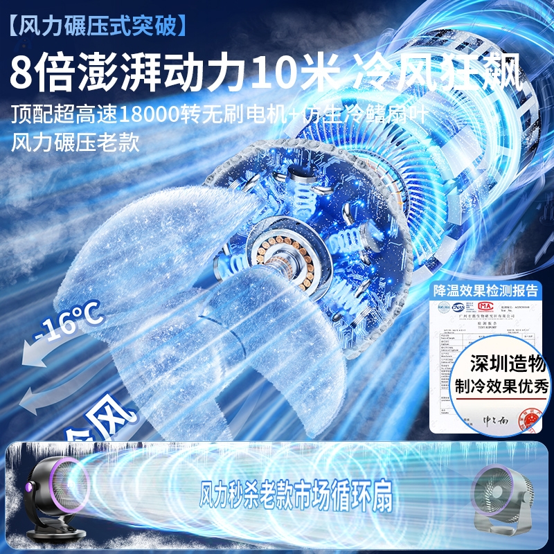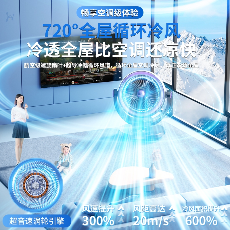 桌面空气循环扇超静音充电大风力电风扇小型家用台式电扇办公室