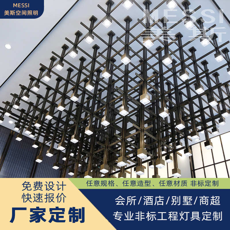 厂家直销现代北欧工程灯酒店会所别墅异形艺术铝材五金沙盘区吊灯