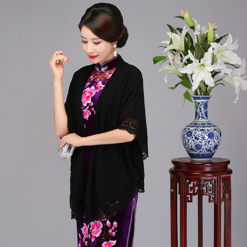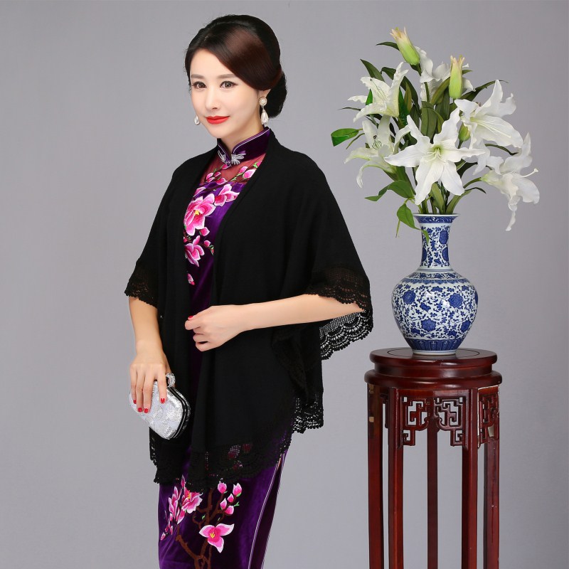 披肩外套女2025新款春秋披风旗袍外搭中长款婚礼妈妈斗篷针织开衫