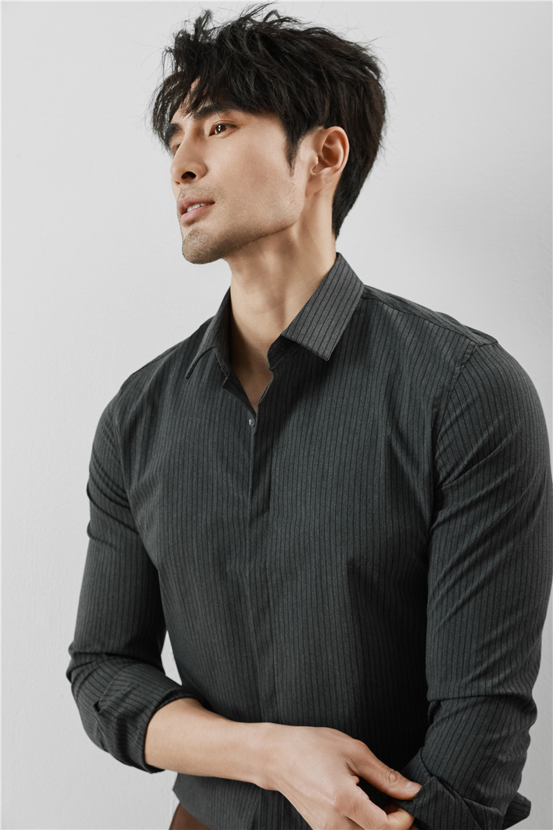 春秋商务绅士雅痞男士气质高级感休闲免烫条纹衬衫男长袖正装衬衣