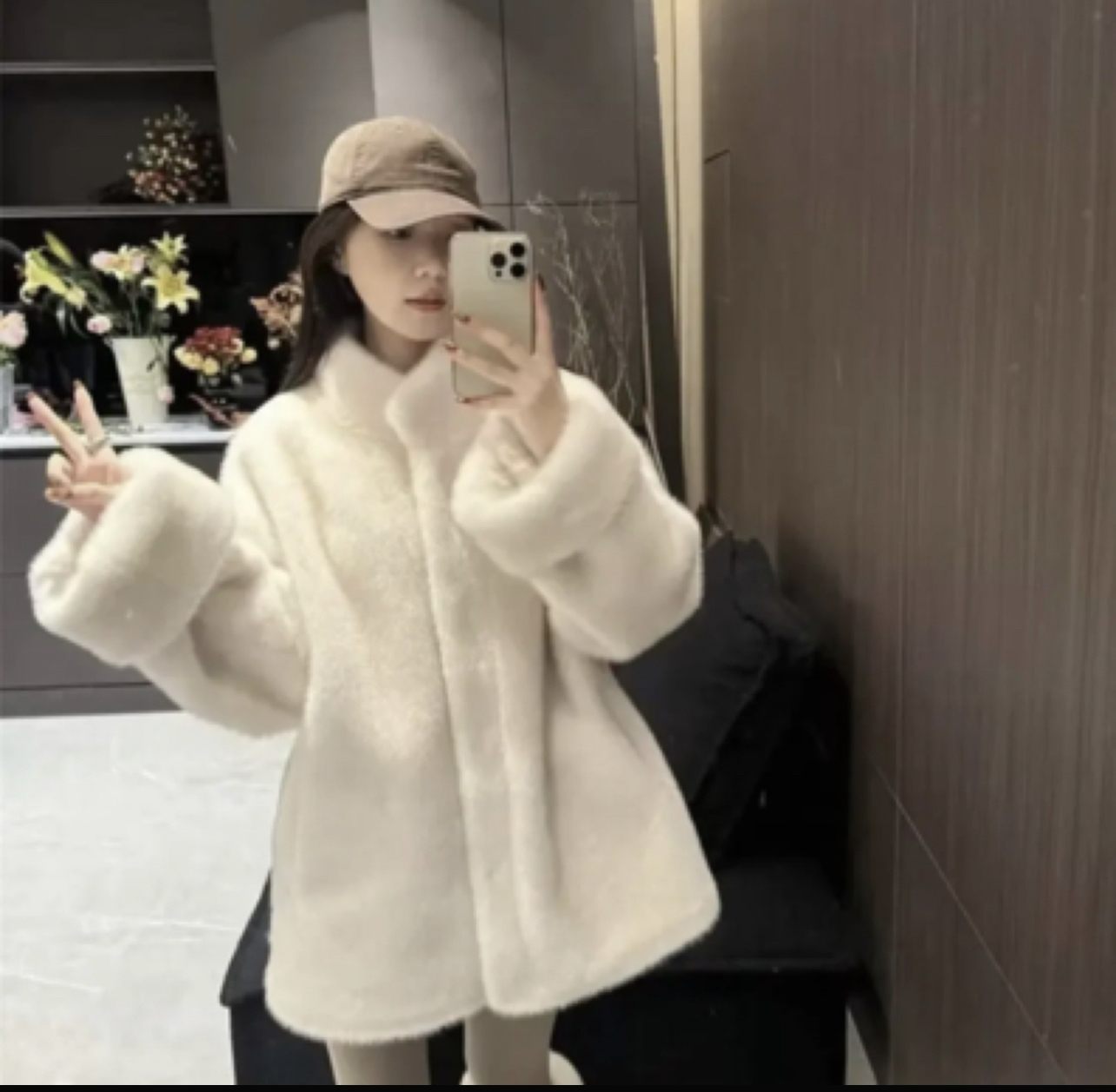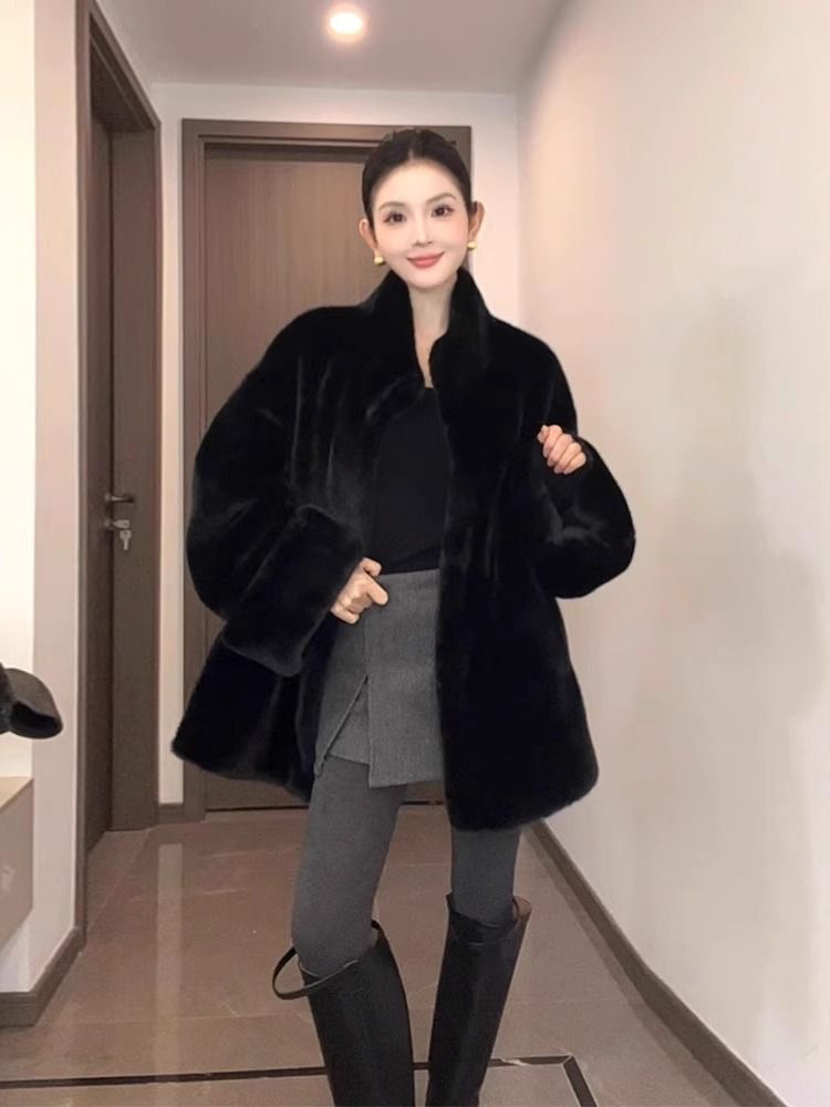 2025新款环保水貂毛皮草外套女冬季新款立领中长款皮毛一体大衣