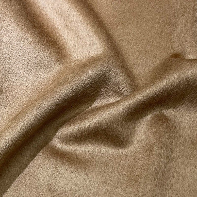 高端纯色桑蚕丝羊驼绒双面羊绒布C料保暖光泽厚长毛羊毛呢大衣外