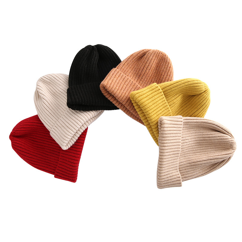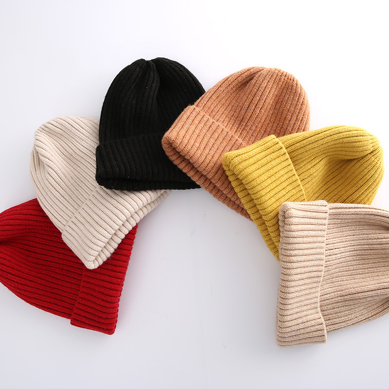 秋冬款儿童时尚针织帽中大童红色毛线帽男女童加厚羊毛线保暖帽子