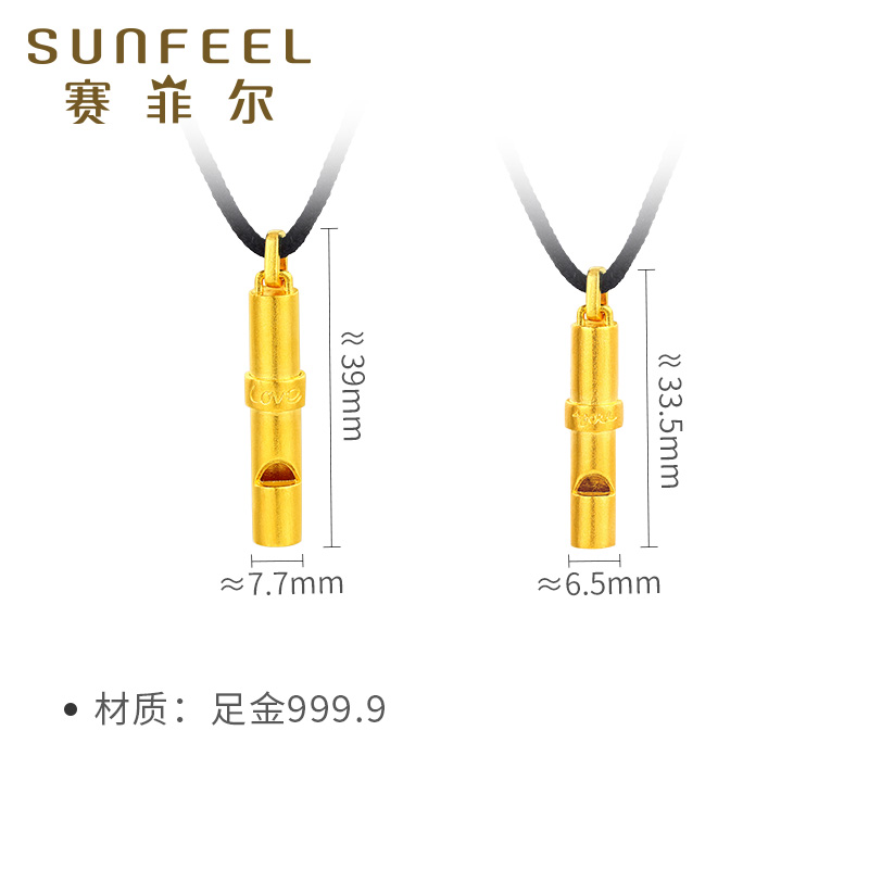 赛菲尔传世金吊坠足金999.9love you吊坠古法哨子吊坠情人节礼物