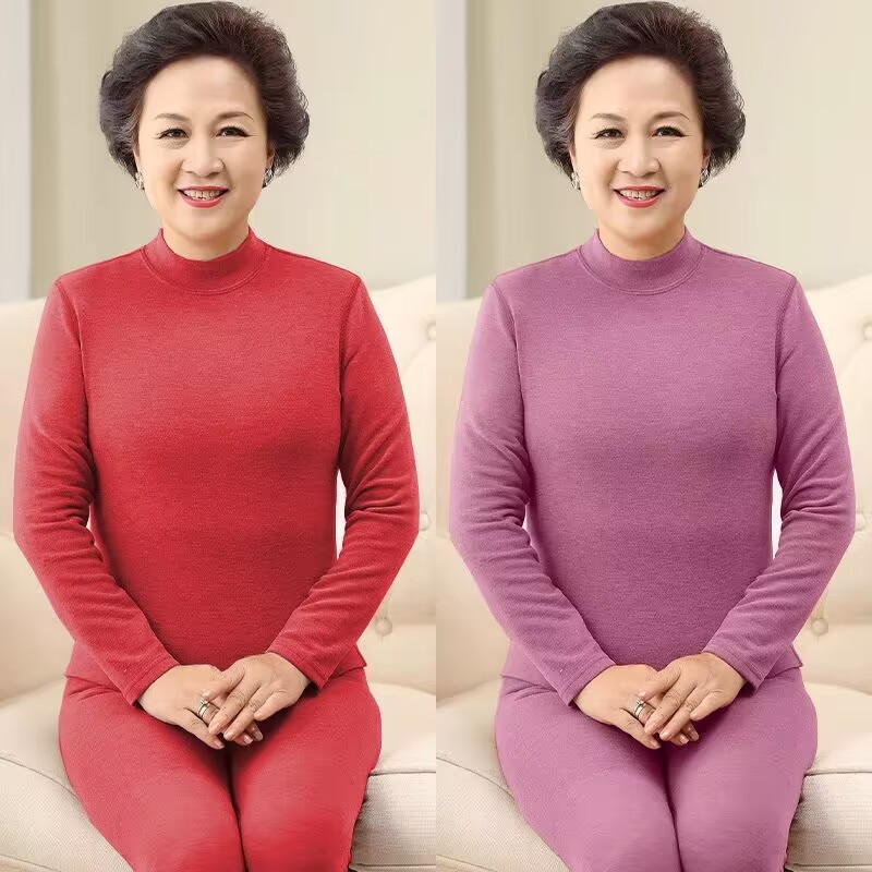 中老年人妈妈秋衣秋裤套装女士保暖内衣加绒加厚德绒印花打底冬季