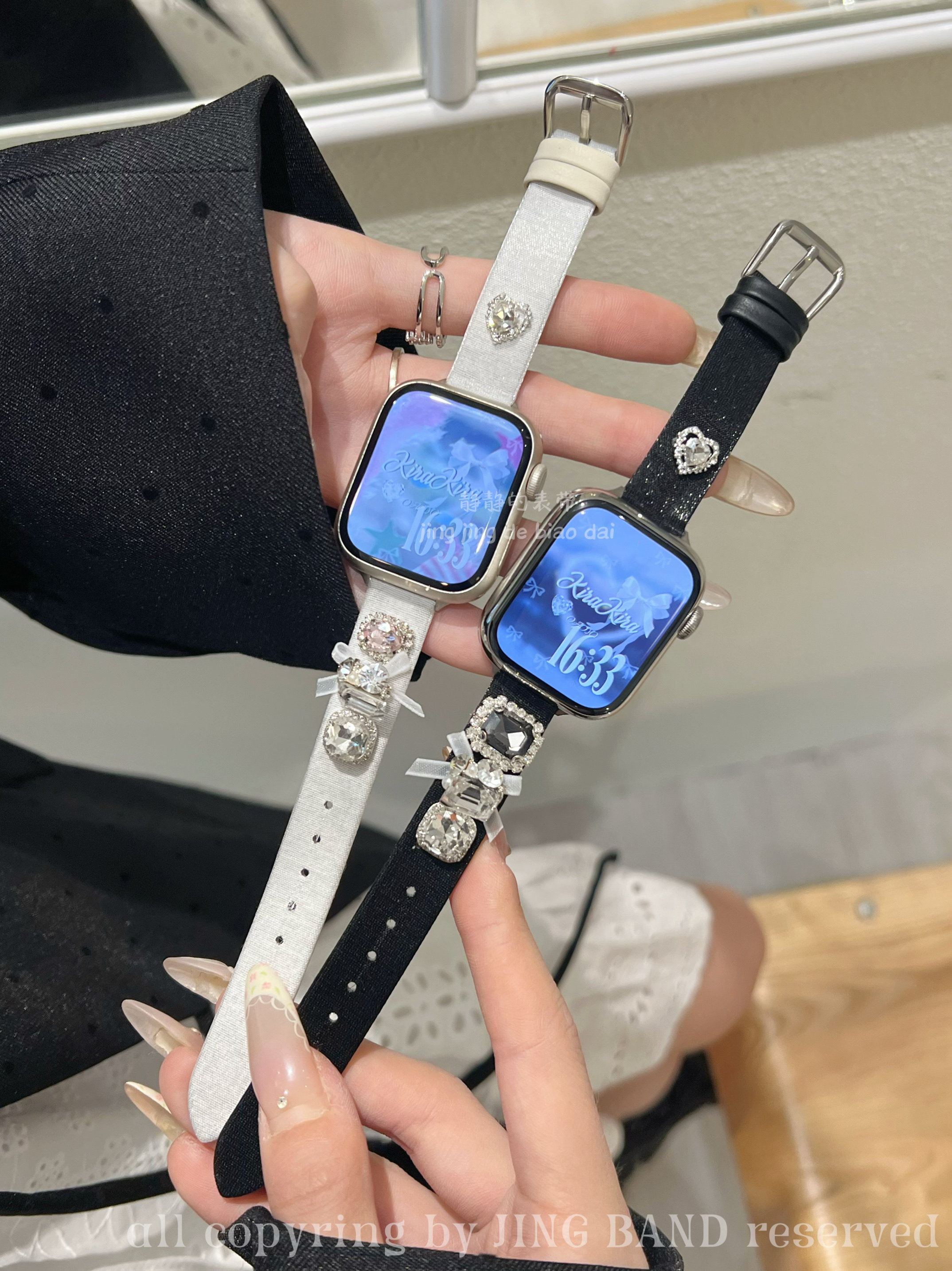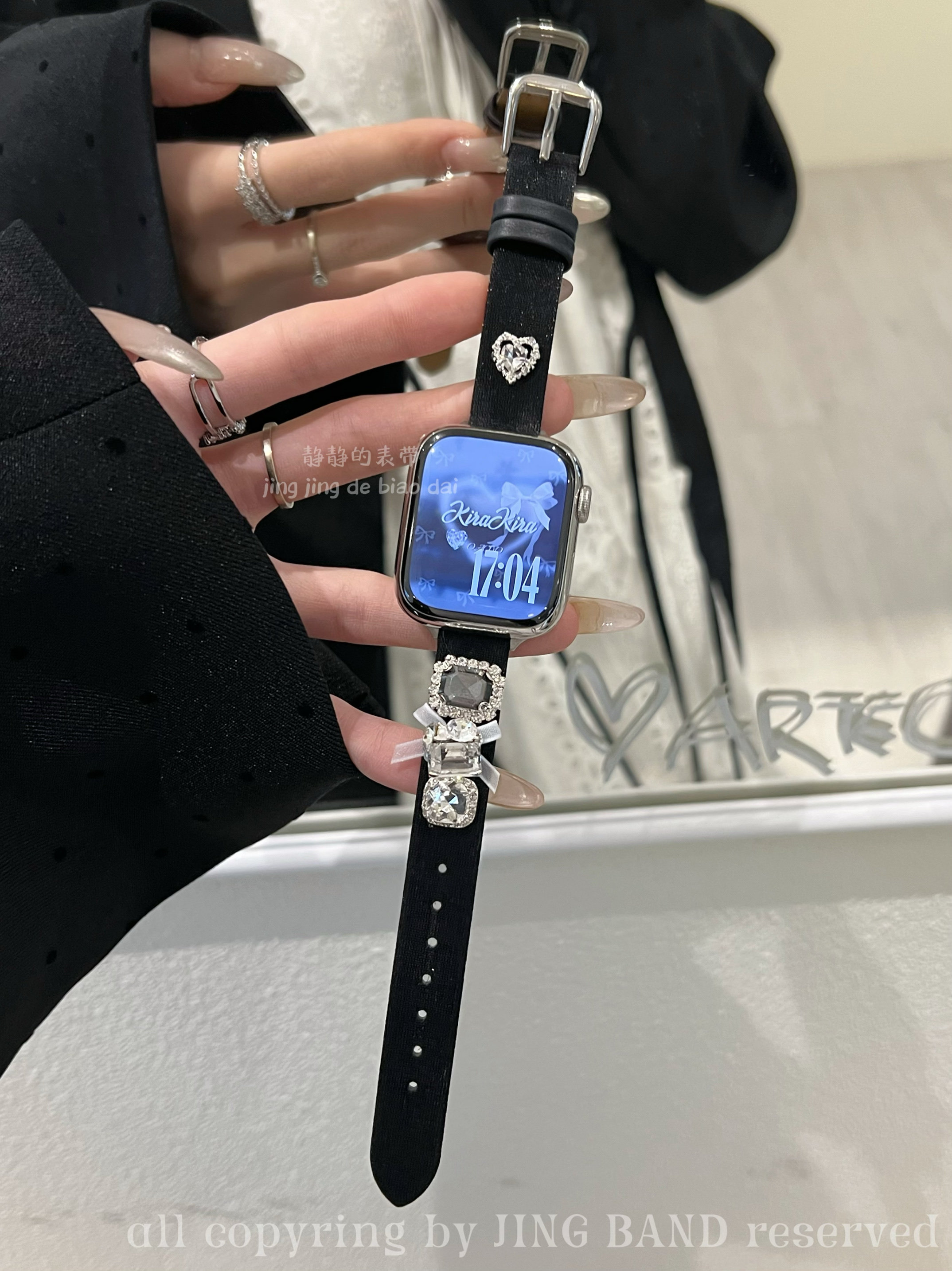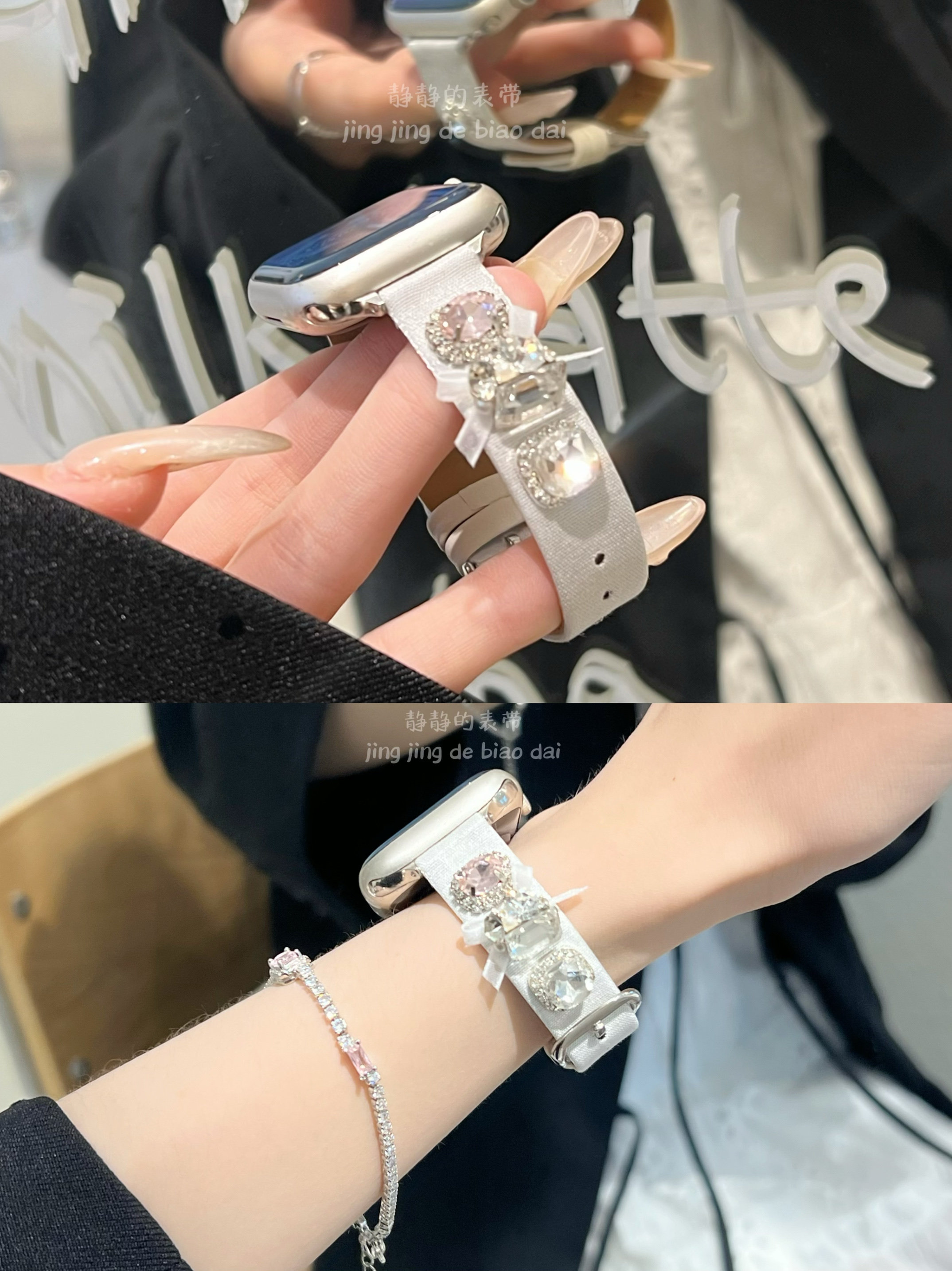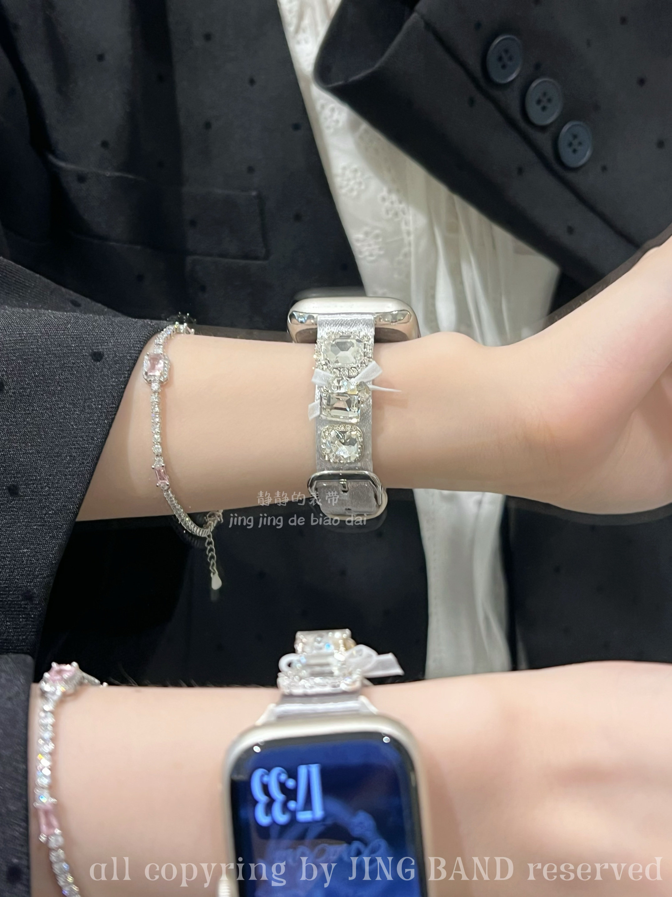 细闪蕾丝星光缎粉钻适用10代applewatch9s87苹果手表SE静静的表带
