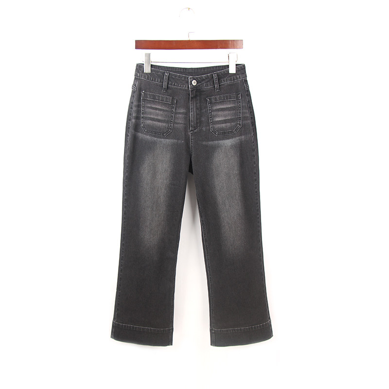 春季款烟灰色9分微喇叭牛仔裤女 外单大码弹力显瘦复古小个子女裤